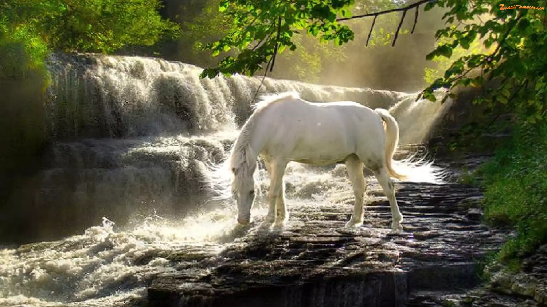 Zdjęcie: Pragnienie, Las, Biały, Koń, Wodospad