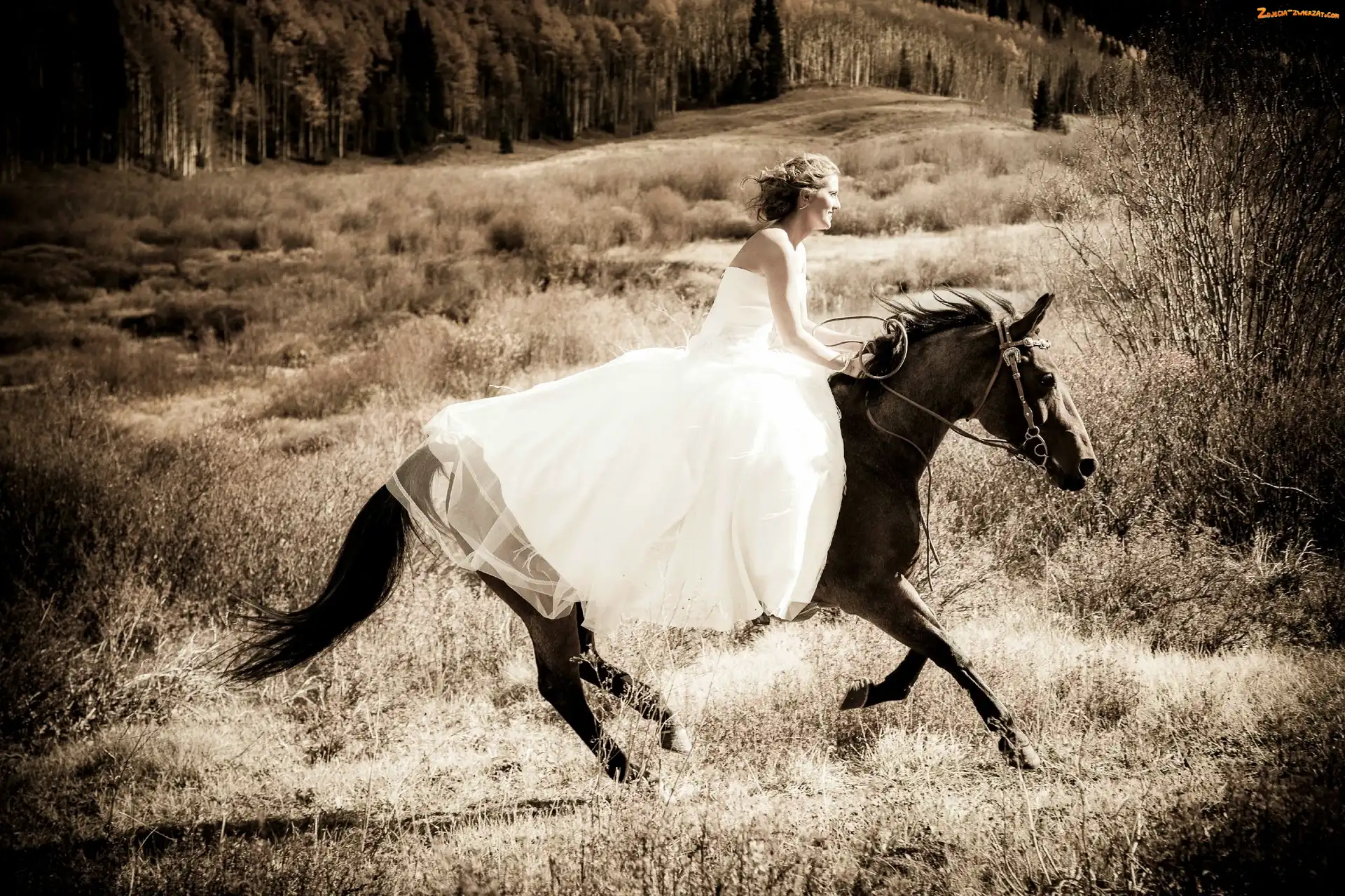 Preria, Galop, Suknia Ślubna, Kobieta, Koń