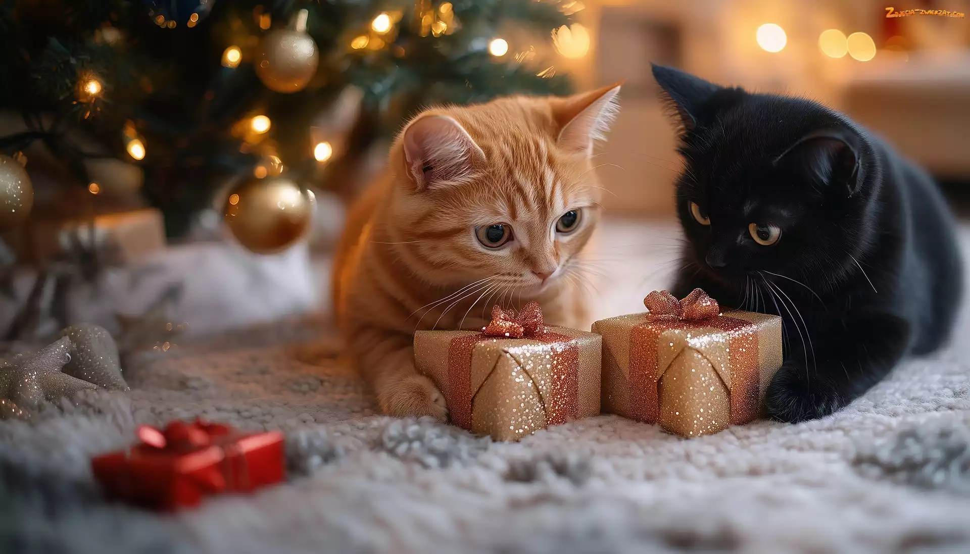 Zdjęcie: Dwa, Koty, Choinka, Prezenty