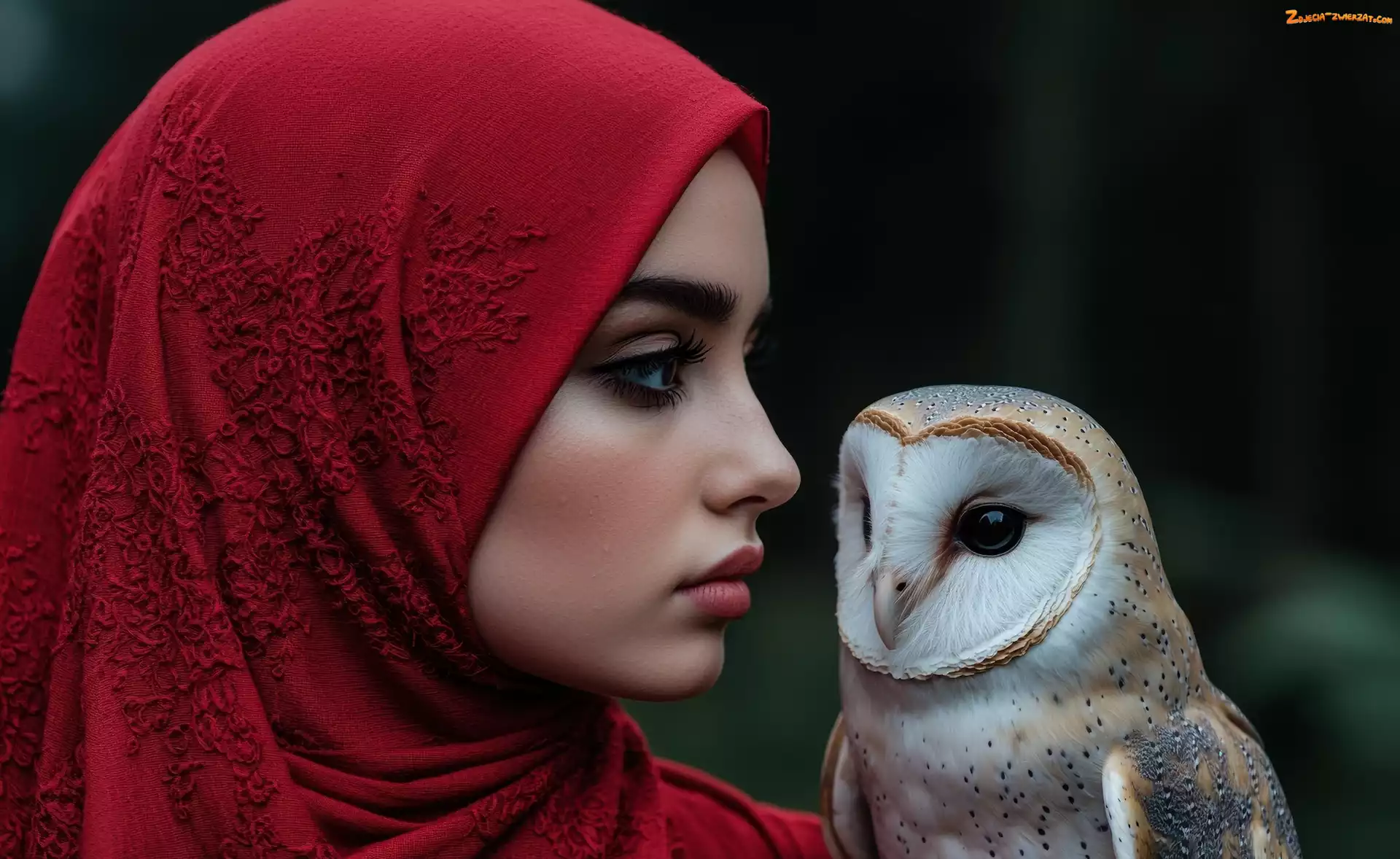 Zdjęcie: Sowa, Kobieta, Chusta, Profil, Grafika, Czerwona, Płomykówka