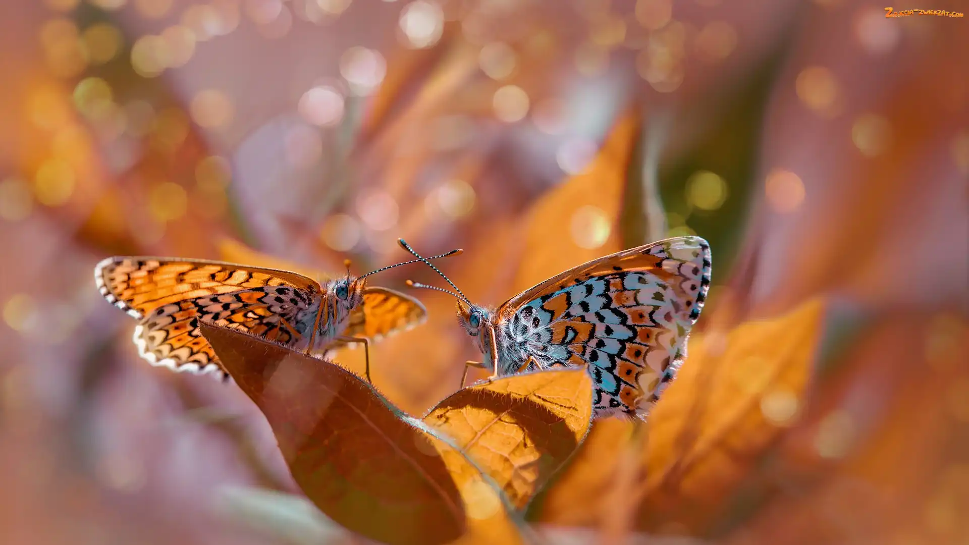 Zdjęcie: Tło, Przeplatka didyma, Dwa, Bokeh, Rozmyte, Motyle, Liście