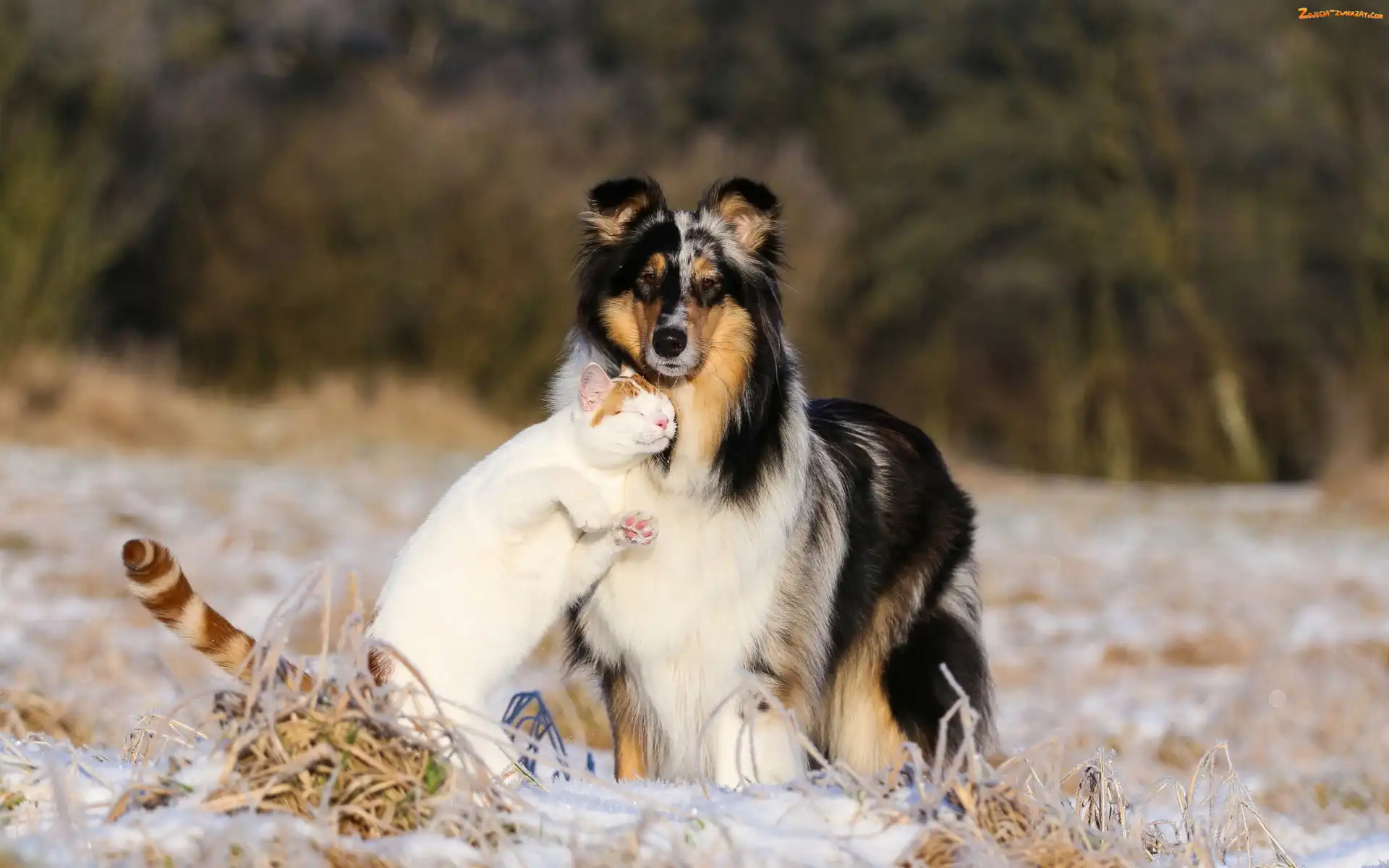 Zdjęcie: Kot, Owczarek szkocki, Przyjaźń, Pies