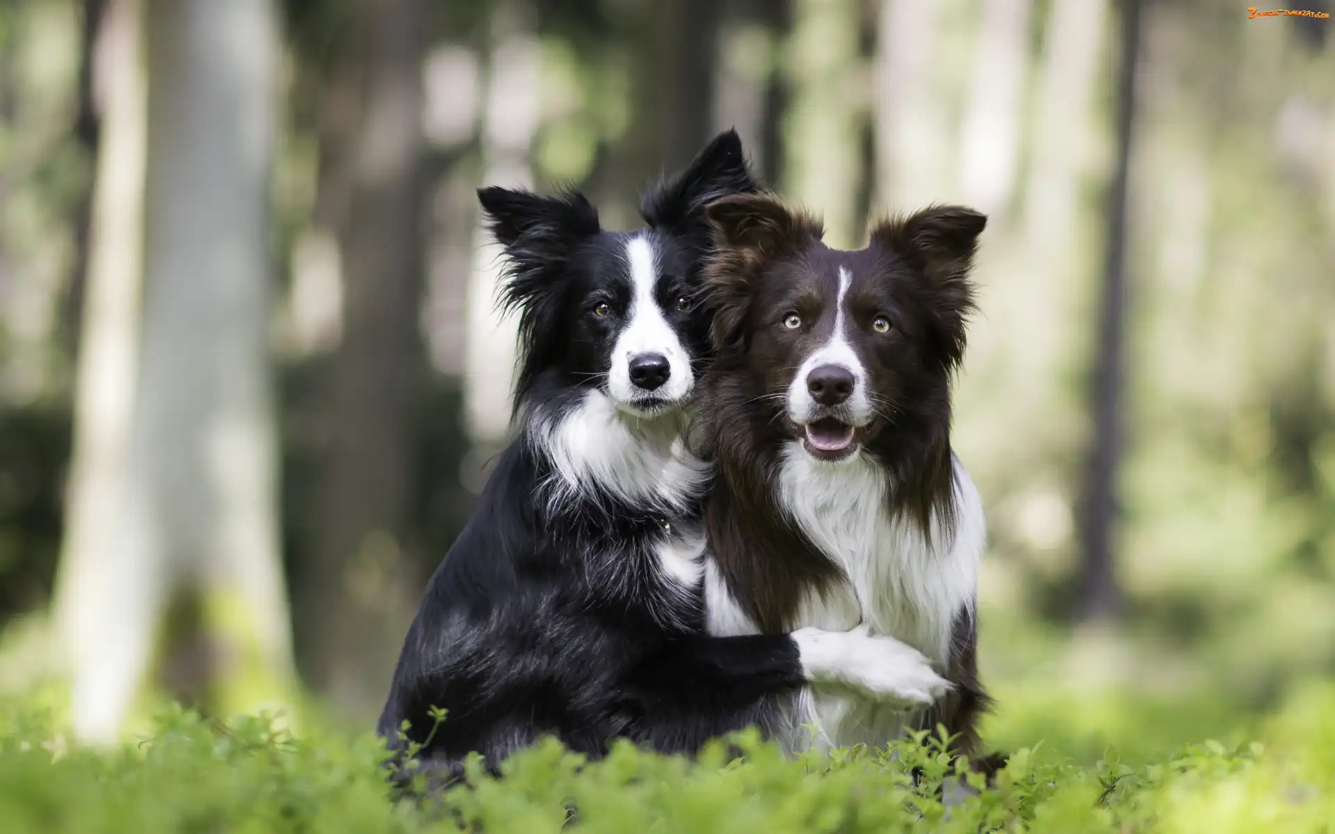 Zdjęcie: Psy, Las, Dwa, Border collie