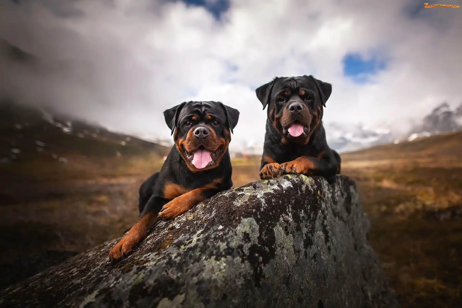 Zdjęcie: Psy, Kamień, Dwa, Rottweilery