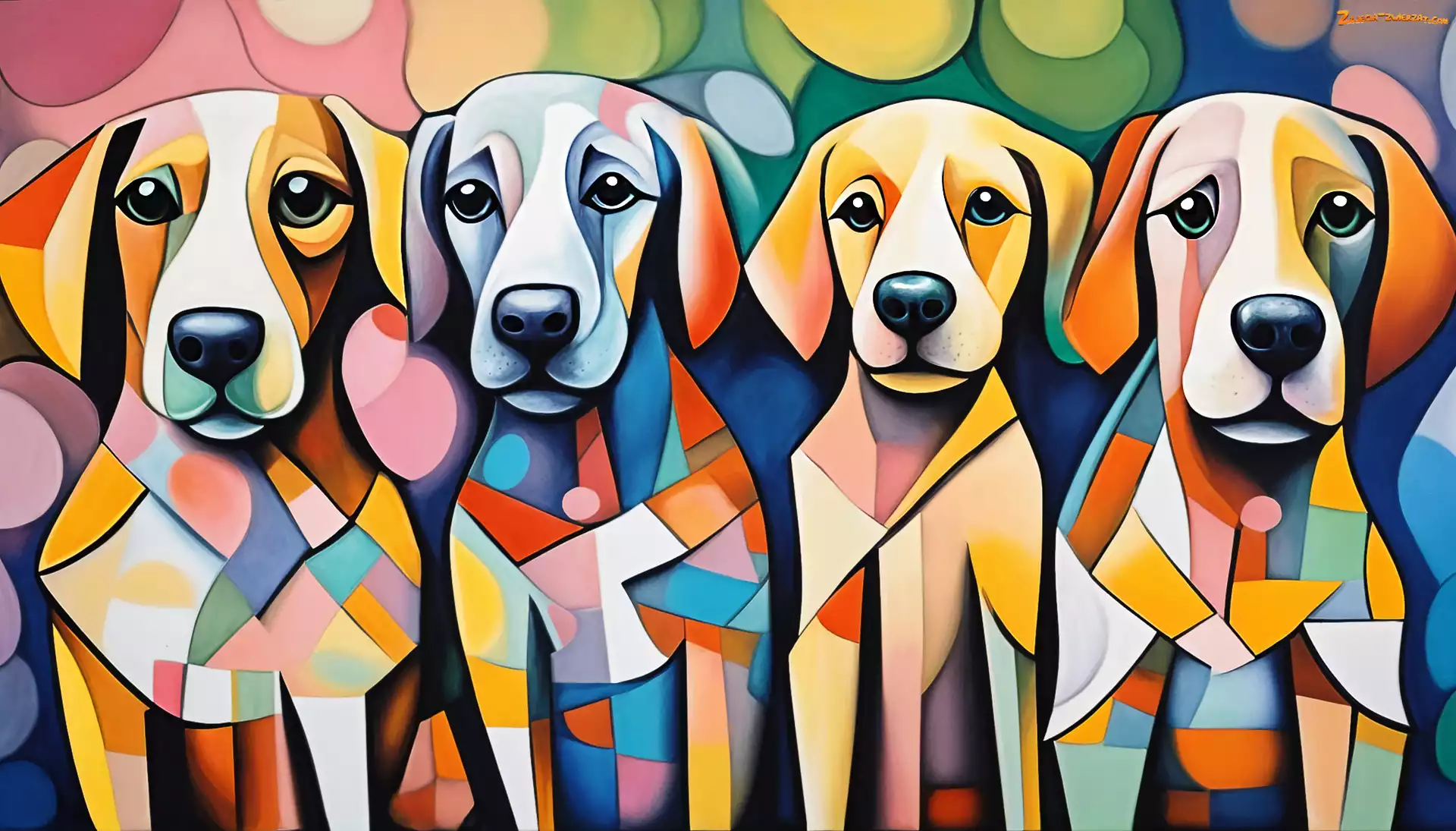 Zdjęcie: Kolorowe, Cztery, Grafika, Psy