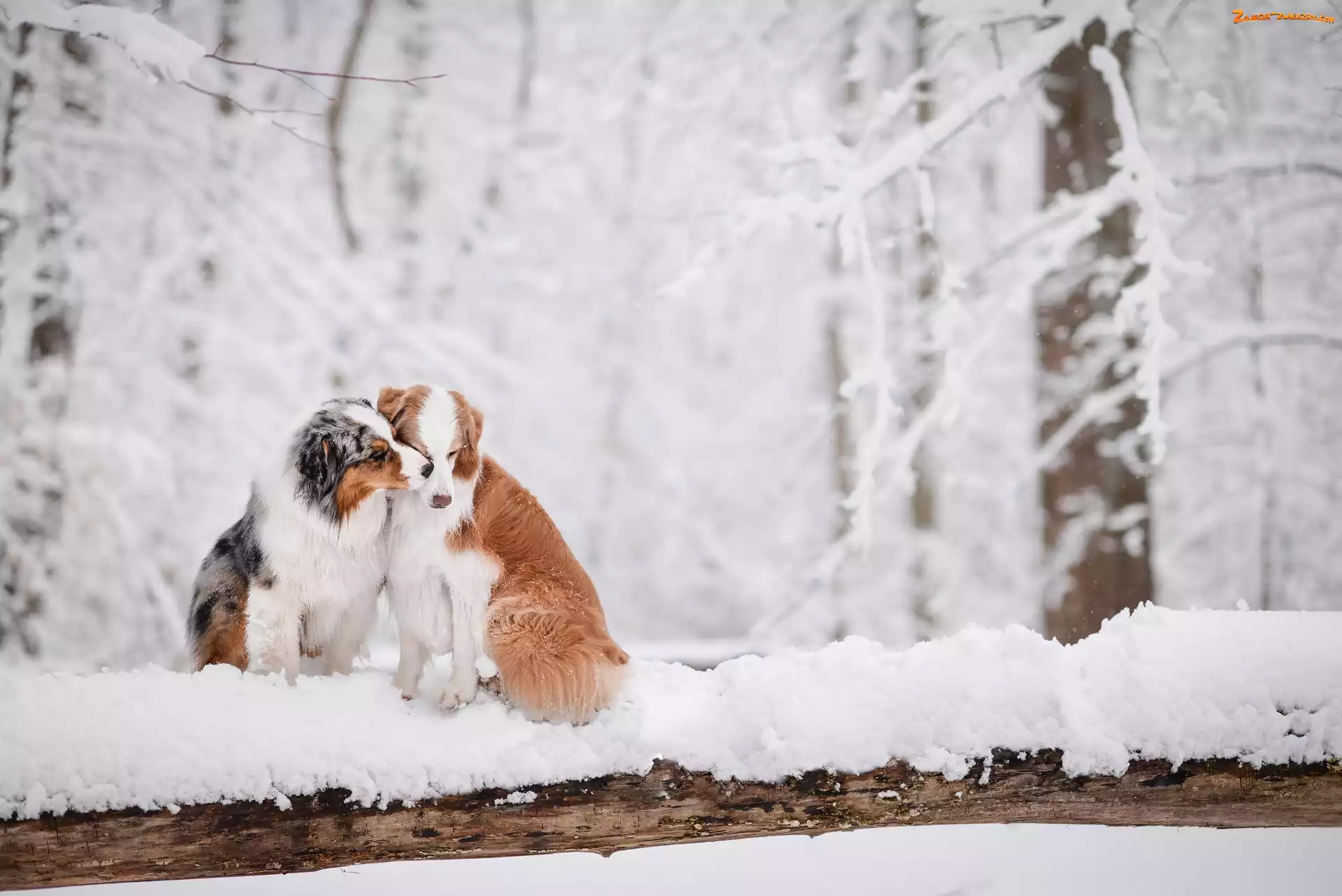 Zdjęcie: Psy, Zima, Dwa, Owczarki australijskie