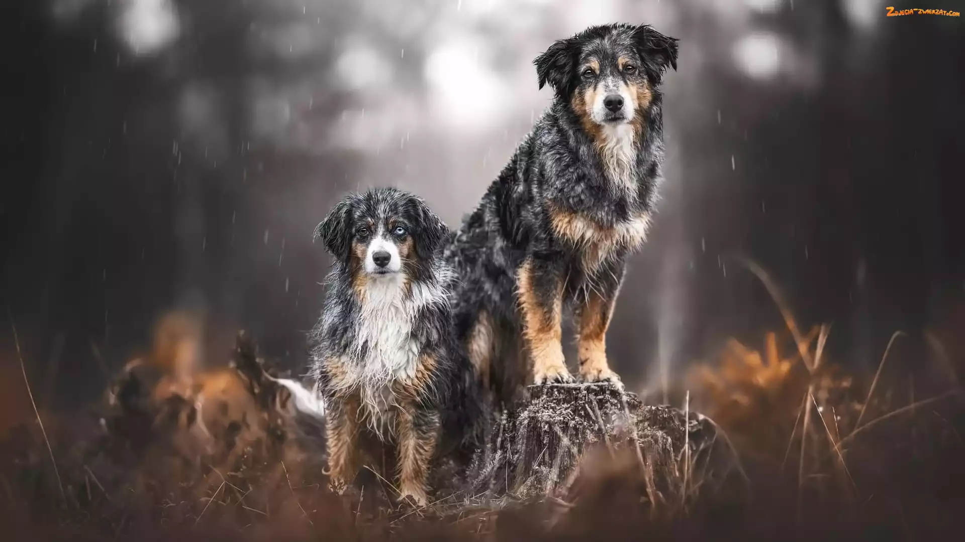 Zdjęcie: Pieniek, Psy, Rośliny, Dwa, Mokre