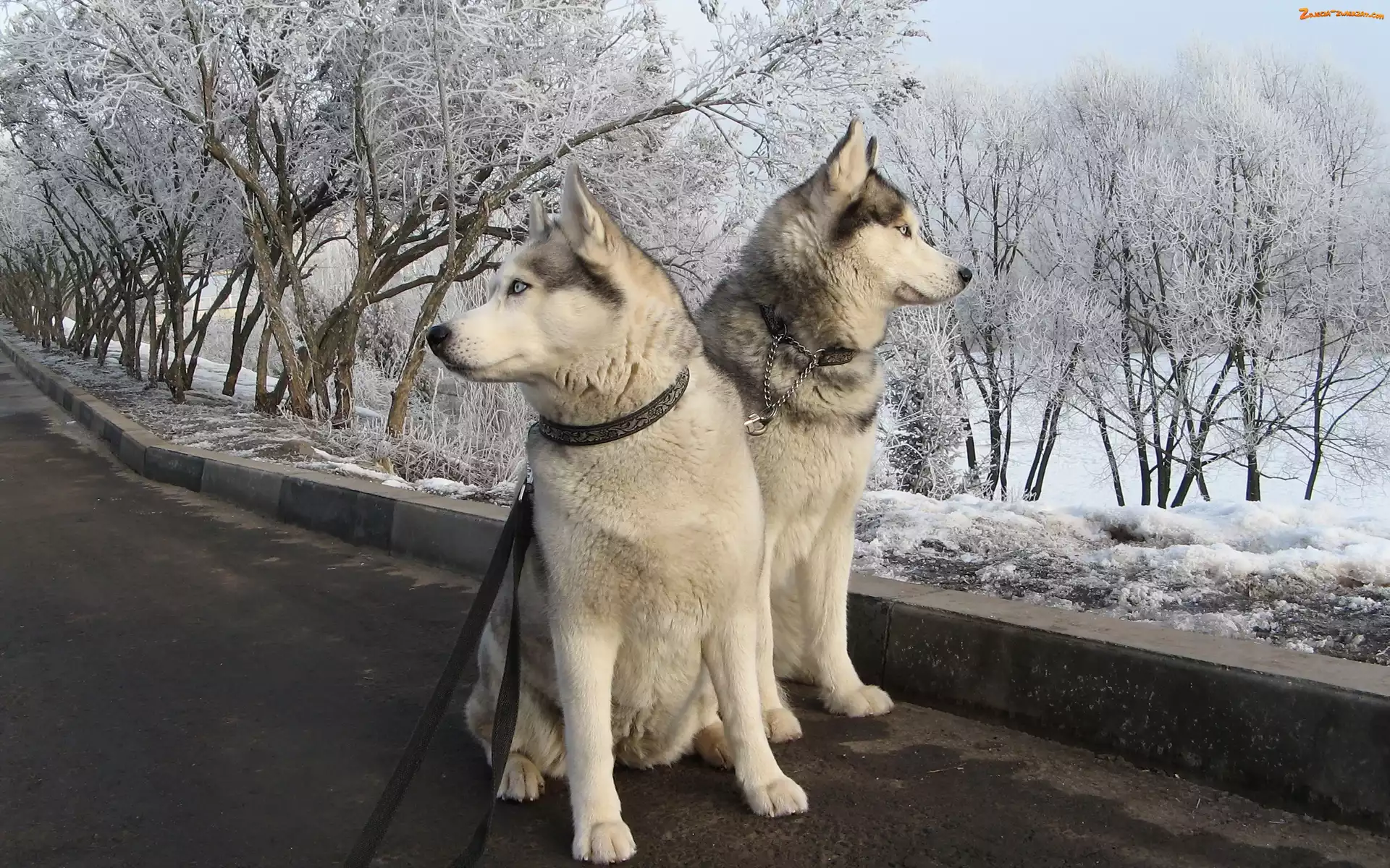 Zdjęcie: Śnieg, Siberian Husky, Psy, Zima