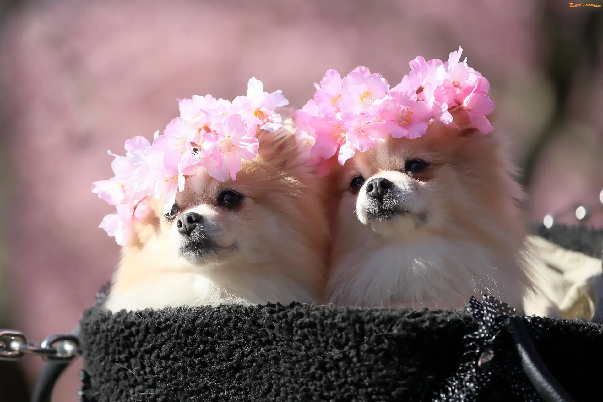Zdjęcie: Psy, Wianki, Dwa, Szpice miniaturowe
