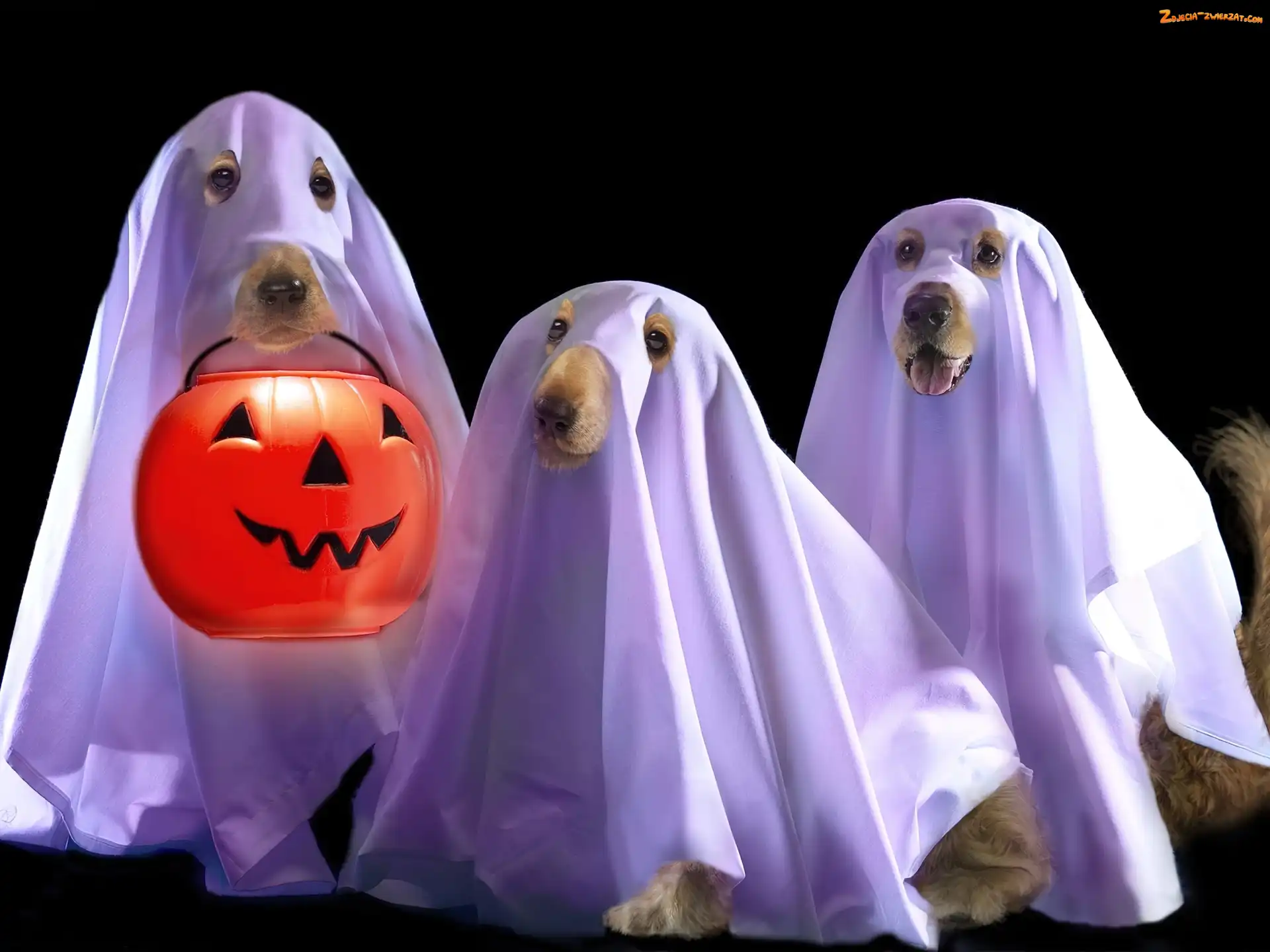 Zdjęcie: Trzy, Psy, Halloween, Duchy