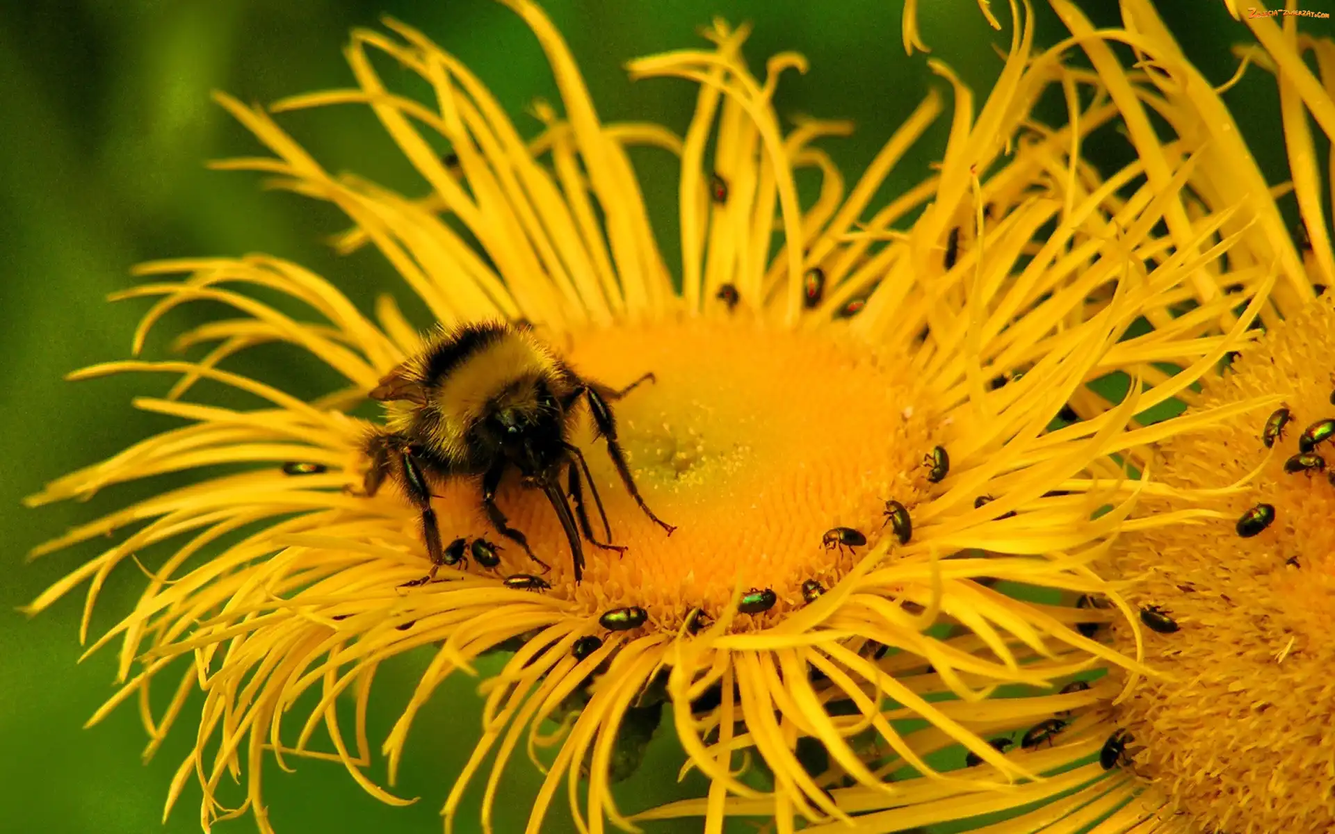 Zdjęcie: Żółty, Makro, Pszczoła, Kwiat