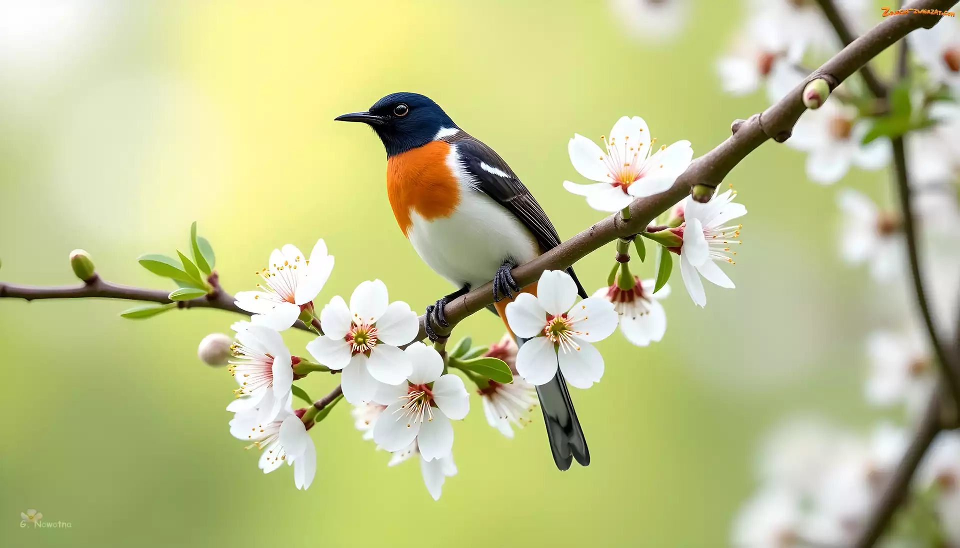 Zdjęcie: Kolorowy, Ptak, Drzewo owocowe, Gałązka