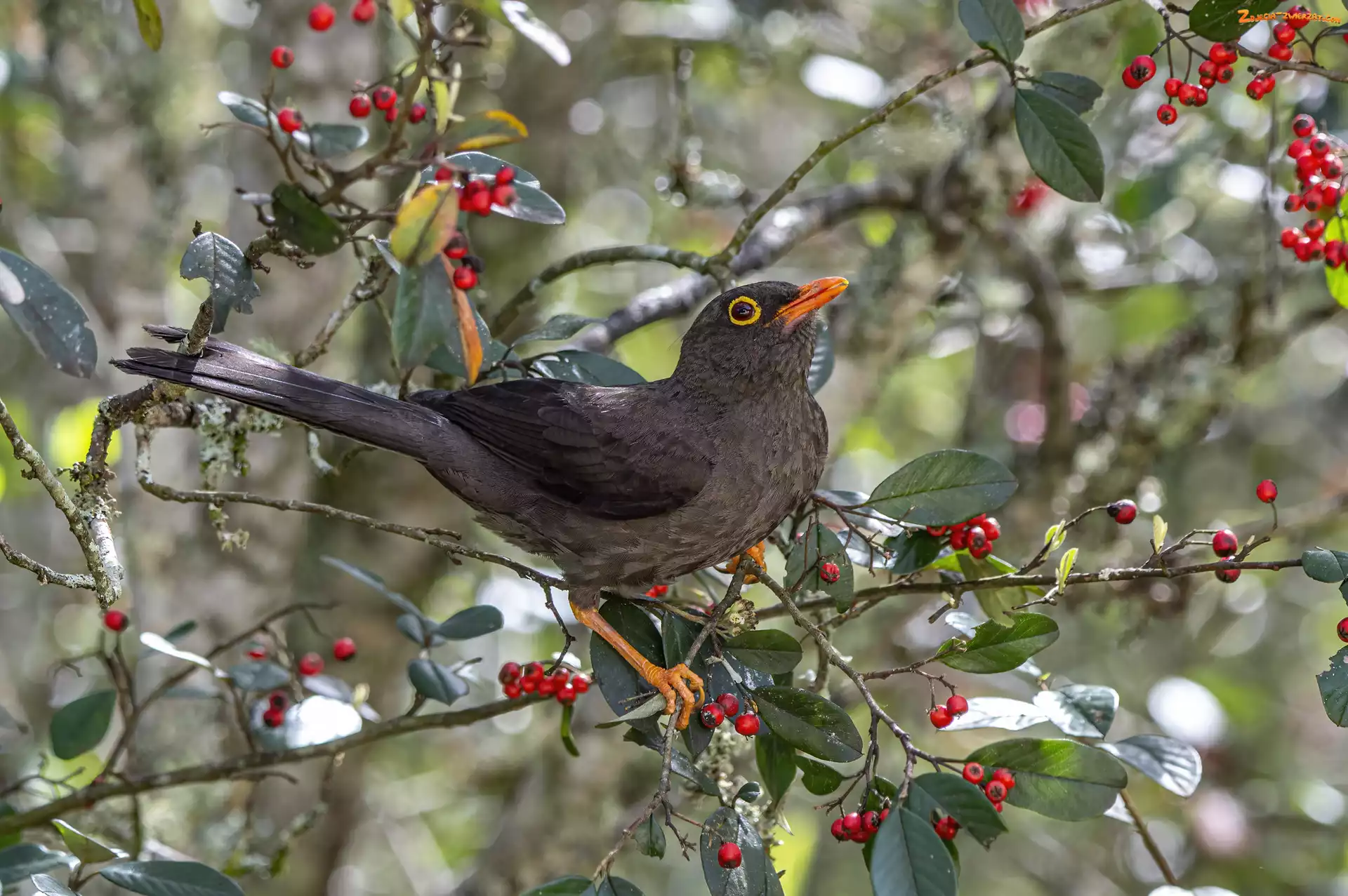 Zdjęcie: Owoce, Czerwone, Gałązki, Ptak, Drozd duży