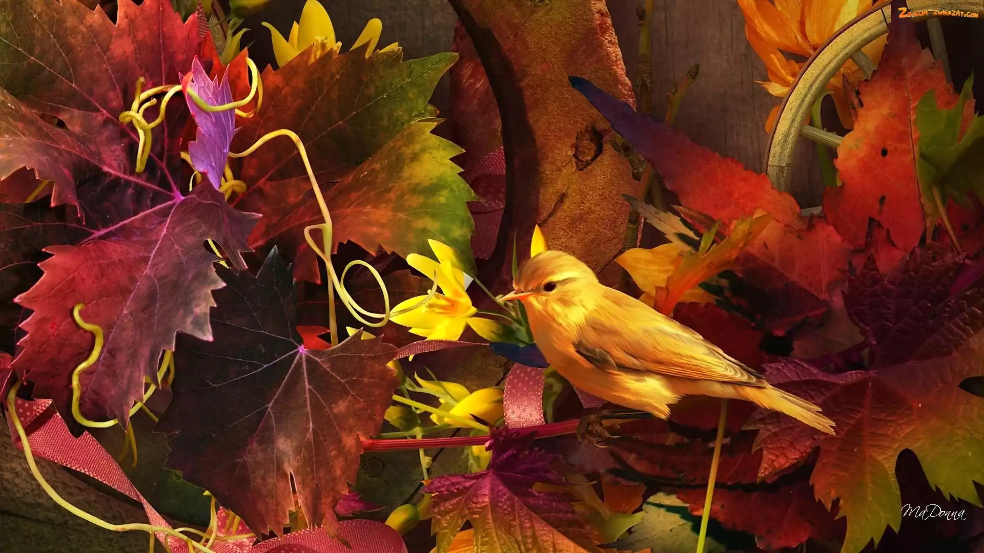 Zdjęcie: Ptak, Liście, Grafika, Kanarek