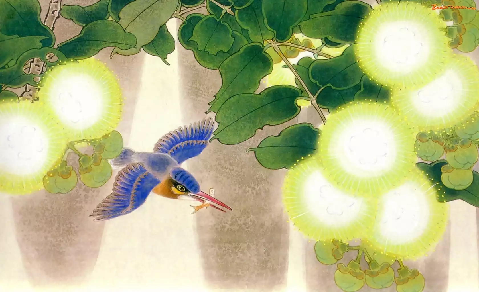 Kwiaty, Ptak, Gałązki