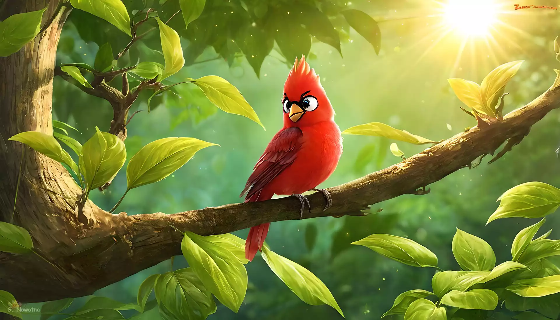 Grafika, Gałąź, Czerwony, Ptak, Drzewo, Liście