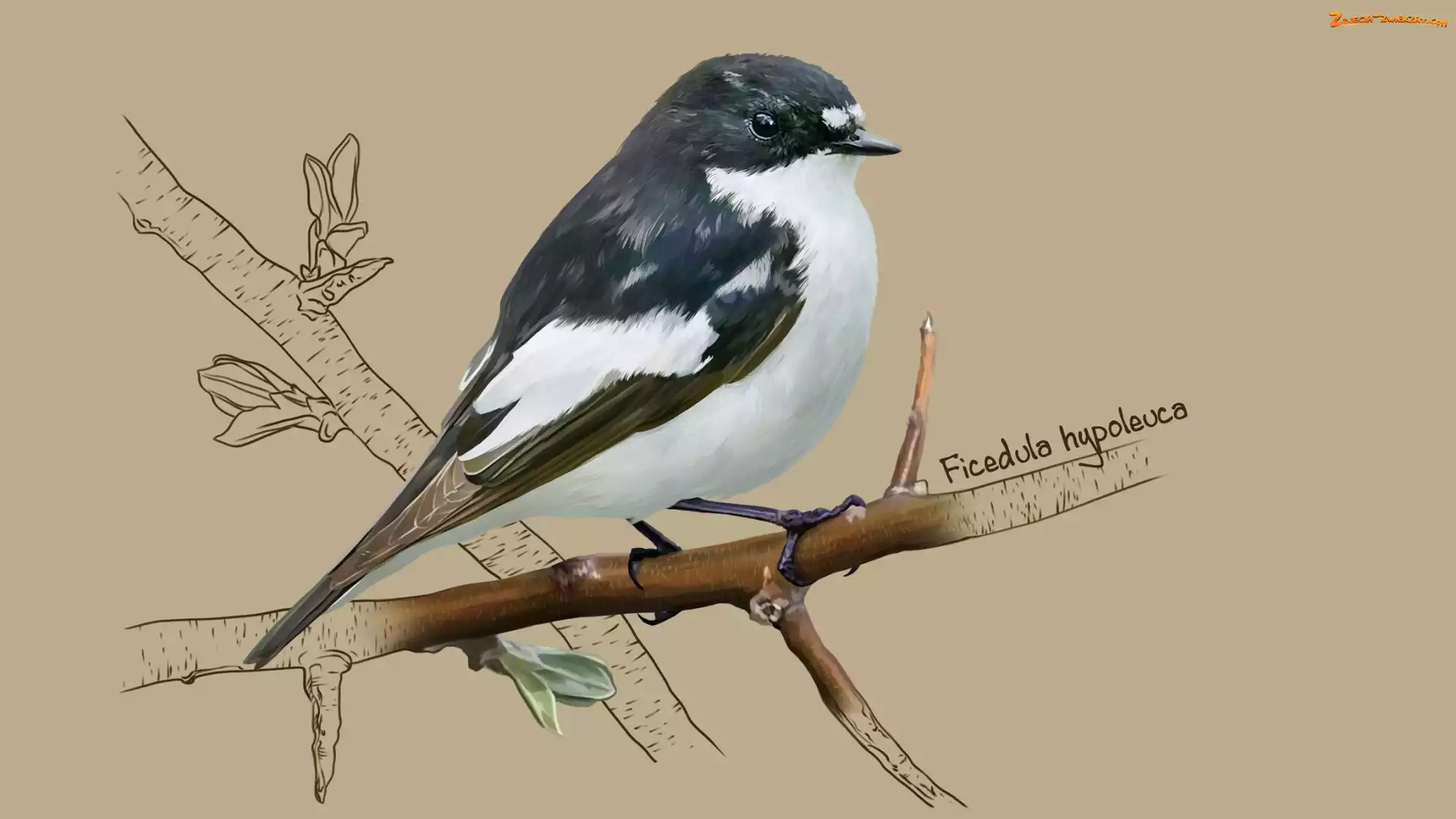 Zdjęcie: Ptak, Gałązka, Grafika, Muchołówka żałobna