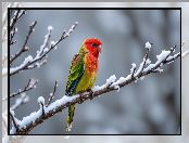 Zdjęcie: Gałązki, Kolorowa, Zima, Ptak, Papuga, Ośnieżone