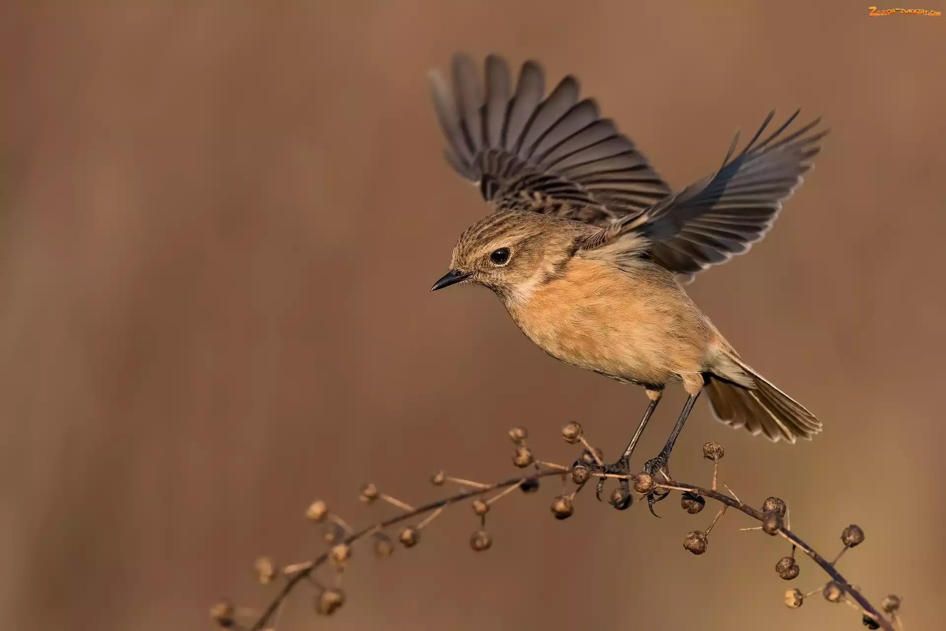 Zdjęcie: Samica, Ptak, Gałązka, Skrzydła, Kląskawka zwyczajna, Rozpostarte