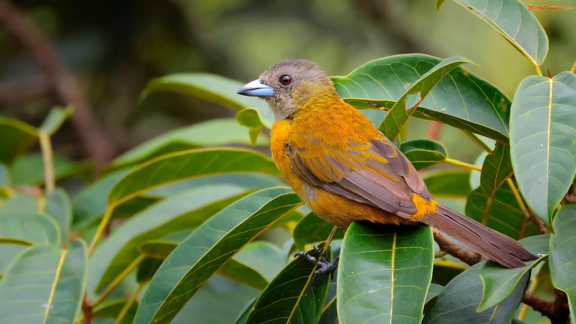 Zdjęcie: Liściaste, Samica, Gałązki, Ptak, Tanager szkarłatny