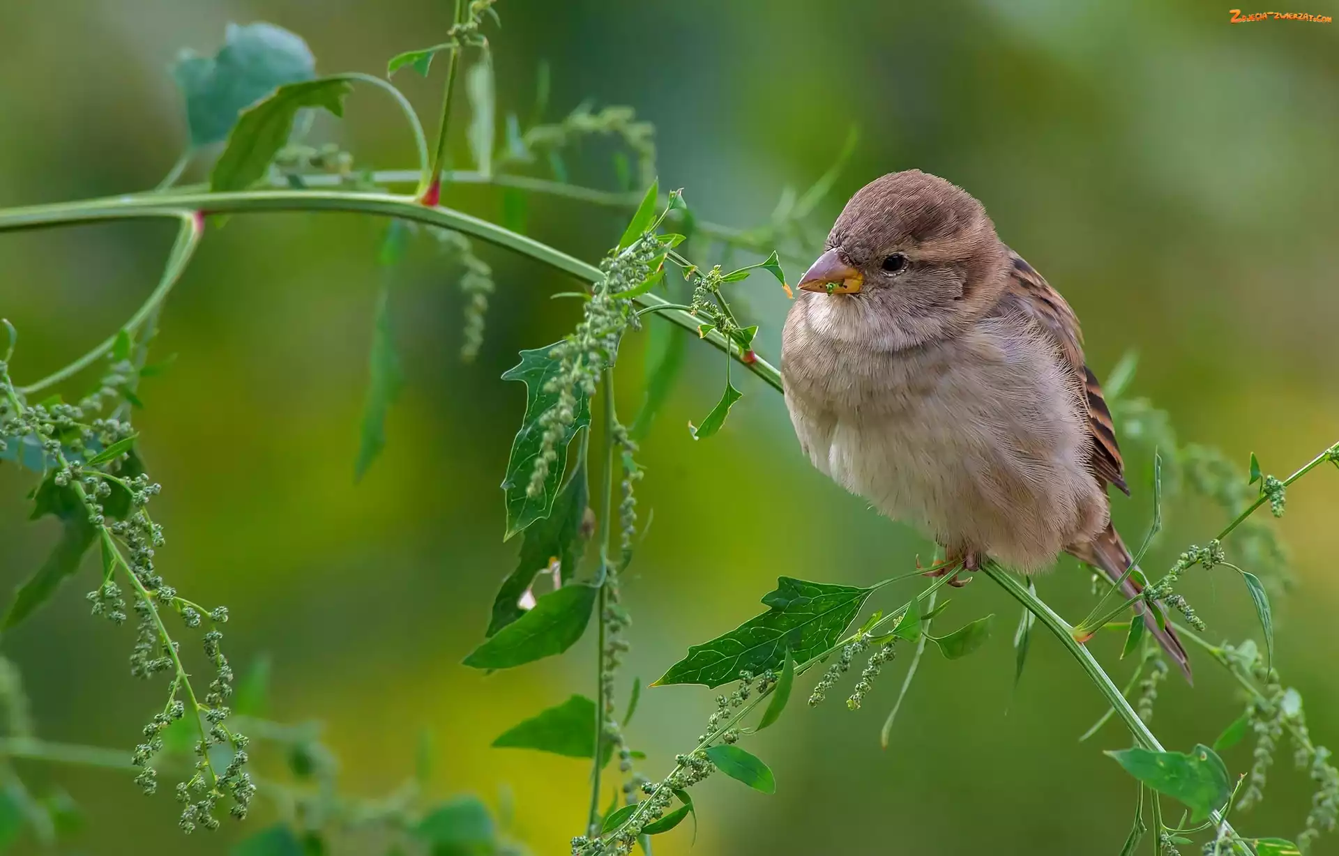 Ptak, Gałązka, Wróbel, Roślina