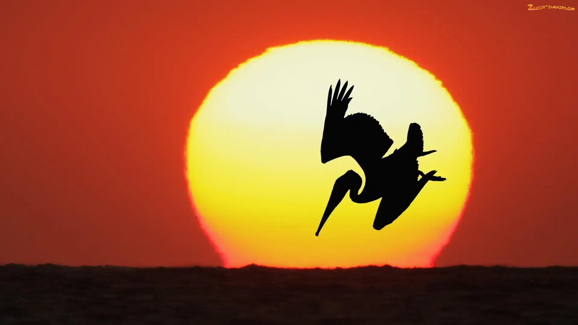 Ptak, Słońce, Pelikan, Zachód Słońca
