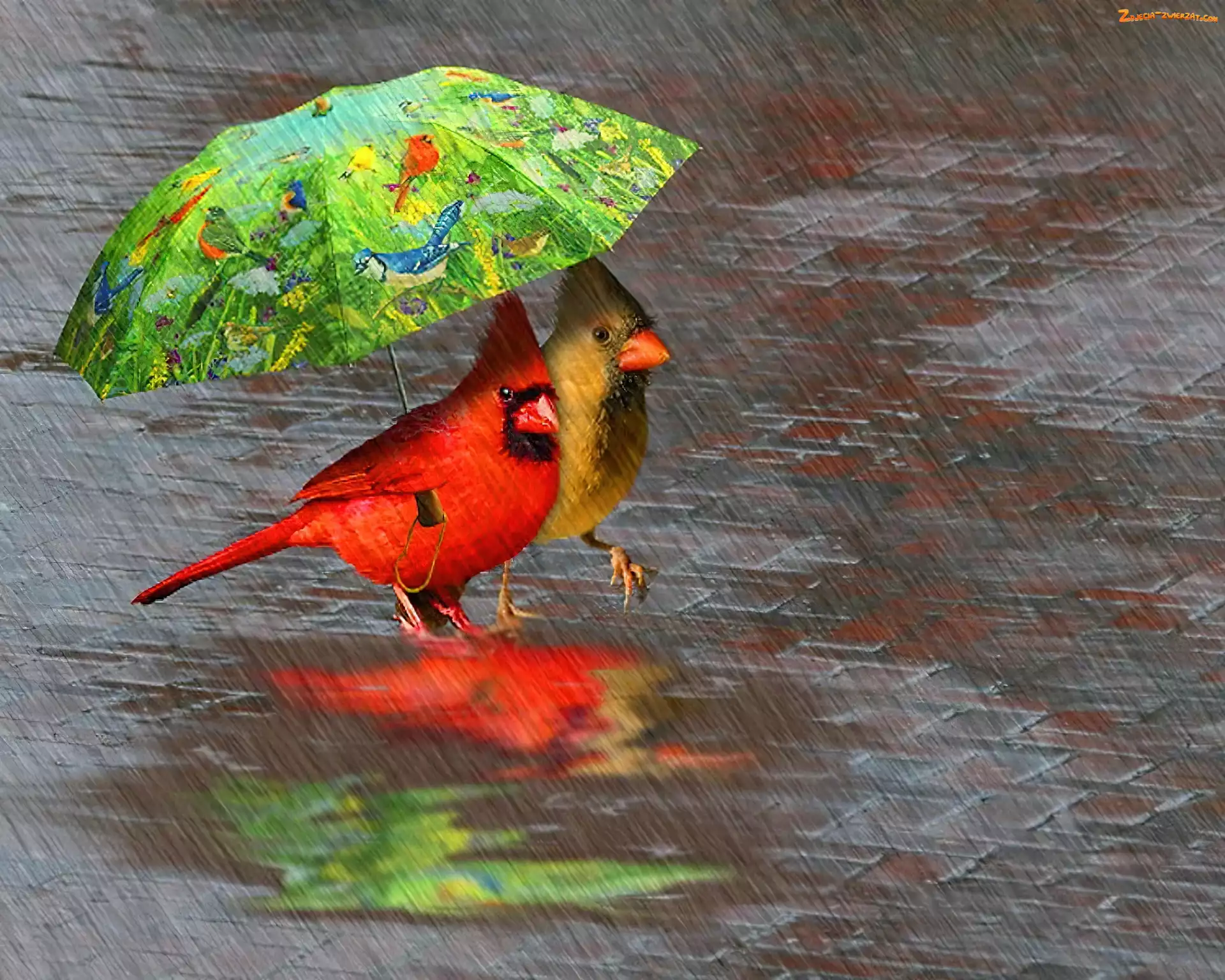 Kardynał, Parasol, Deszcz