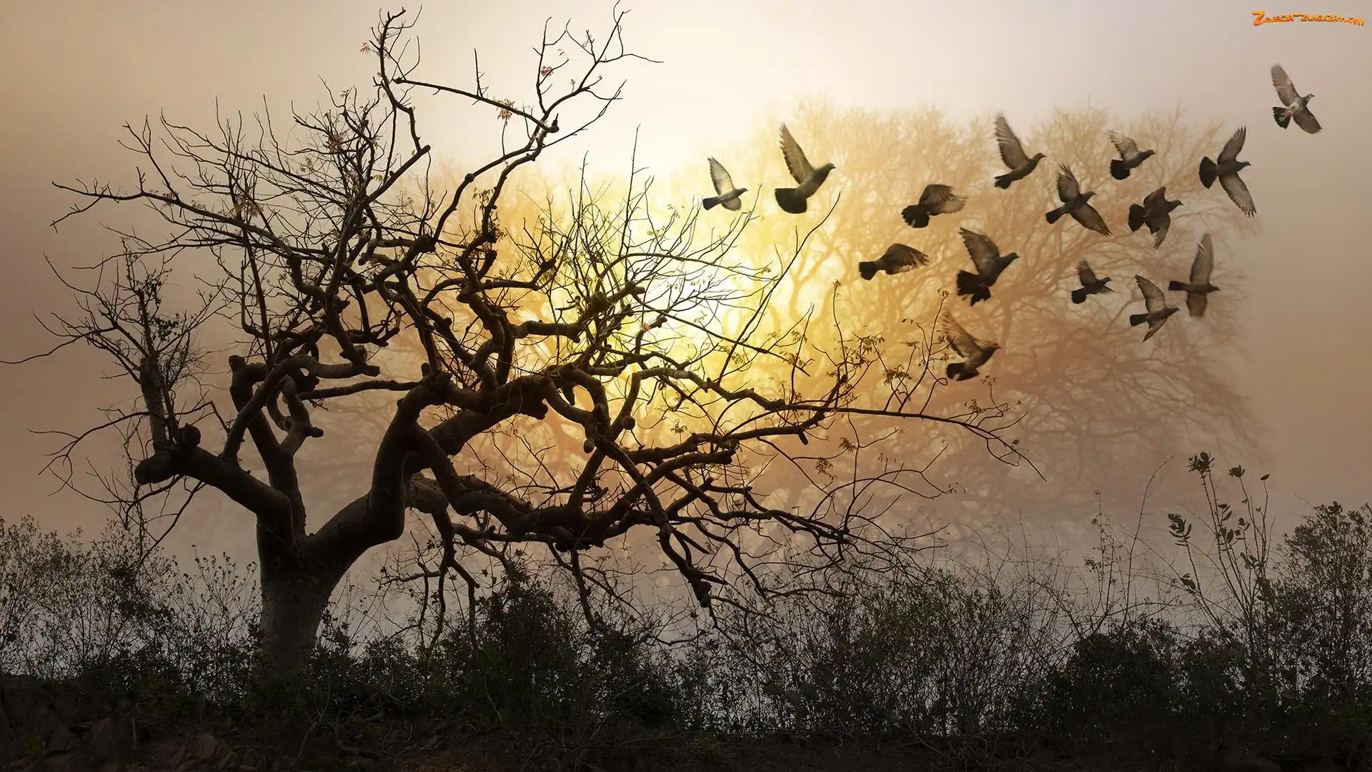 Zdjęcie: Ptaki, Światło, Drzewo, Przebijające