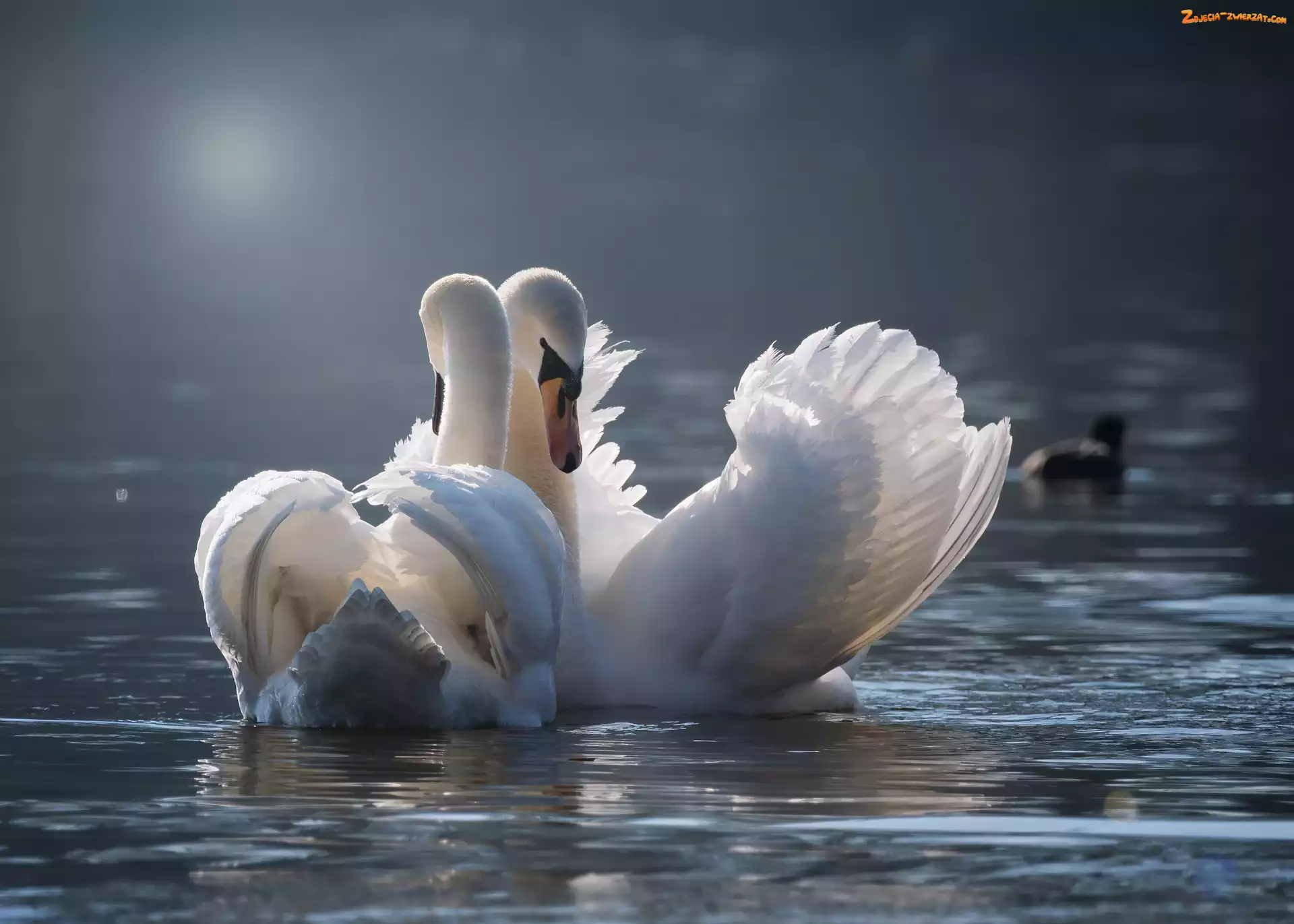 Zdjęcie: Ptaki, Łabędzie, Dwa, Białe