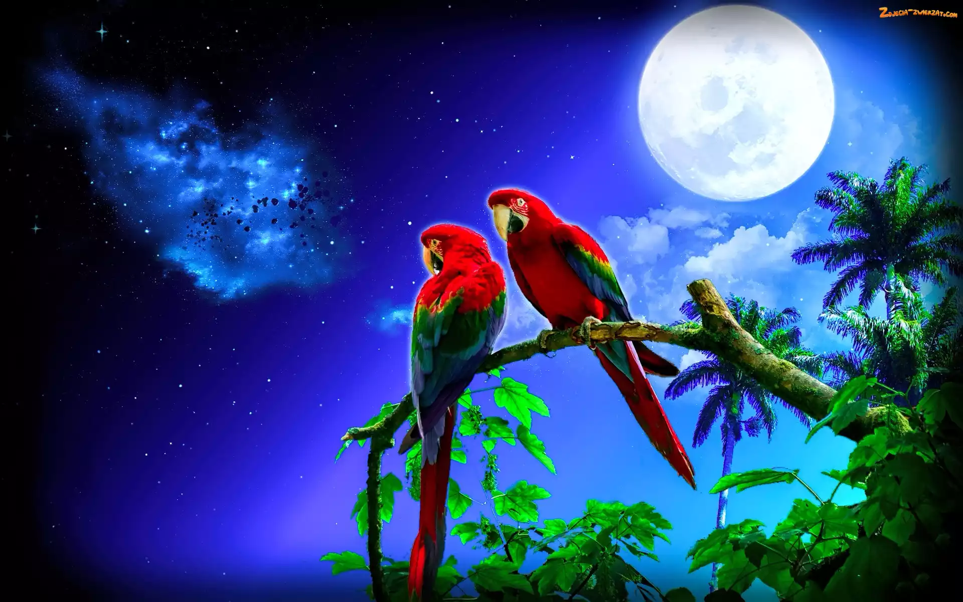 Zdjęcie: Ptaki, Noc, Dwa, Papuga