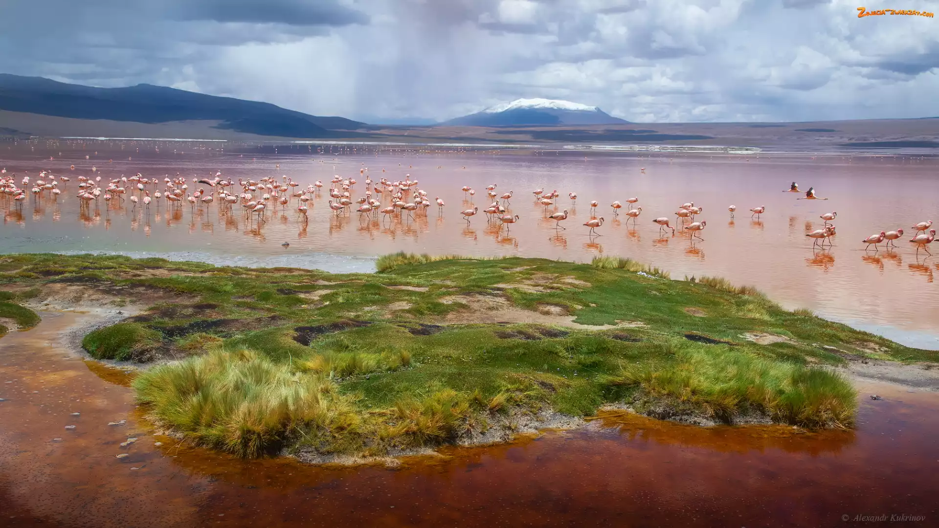 Zdjęcie: Boliwia, Ptaki, Jezioro, Góry, Andy, Laguna Colorada, Flamingi