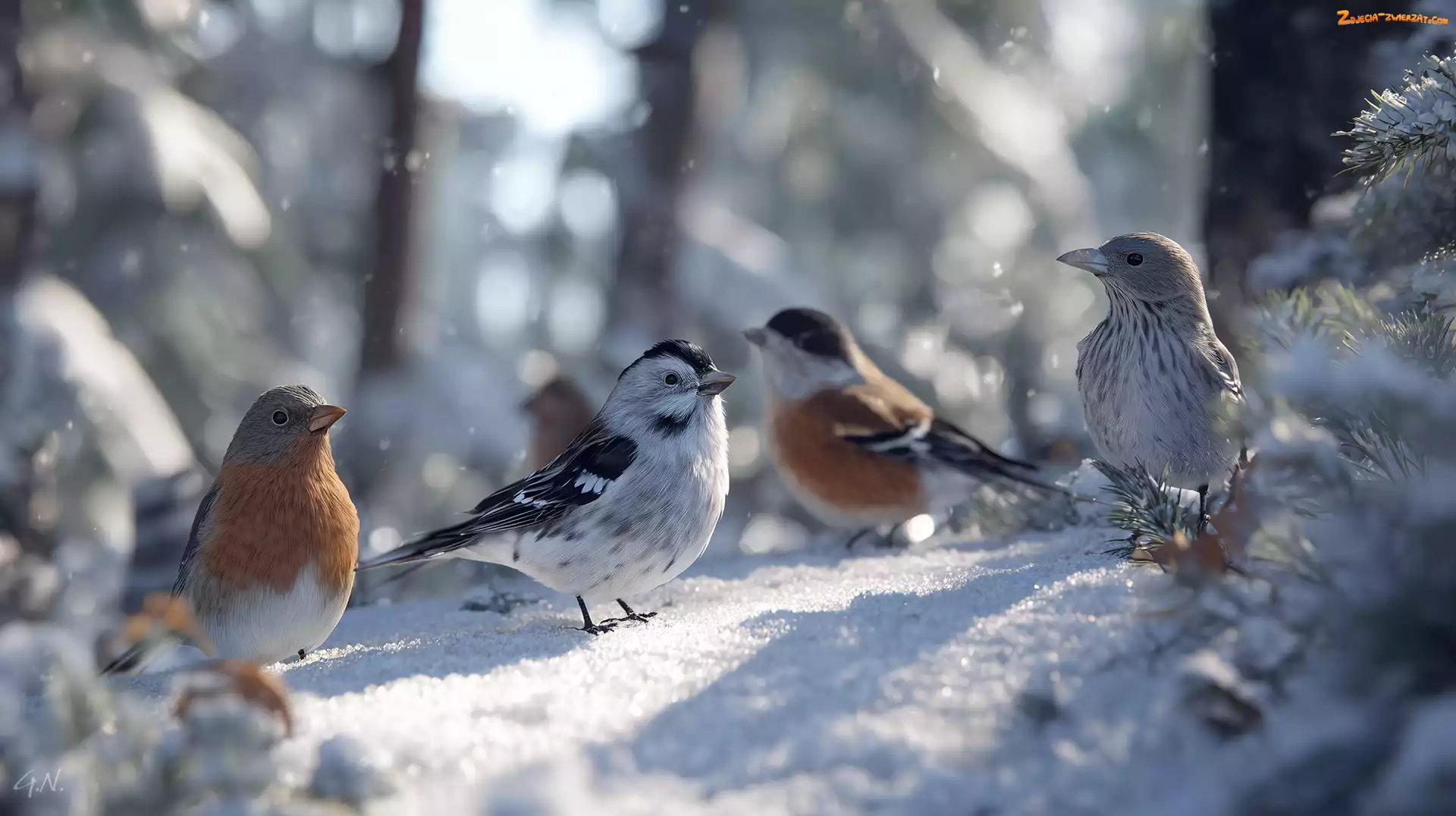 Zdjęcie: Kolorowe, Ptaki, Grafika AI, Zima
