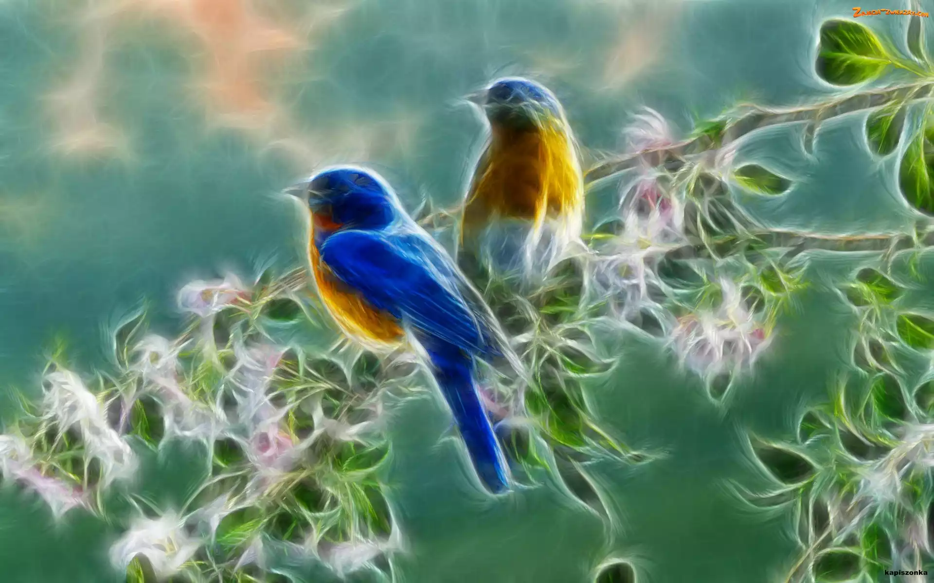 Zdjęcie: Ptaki, Drzewa, Kolorowe, Łodygi