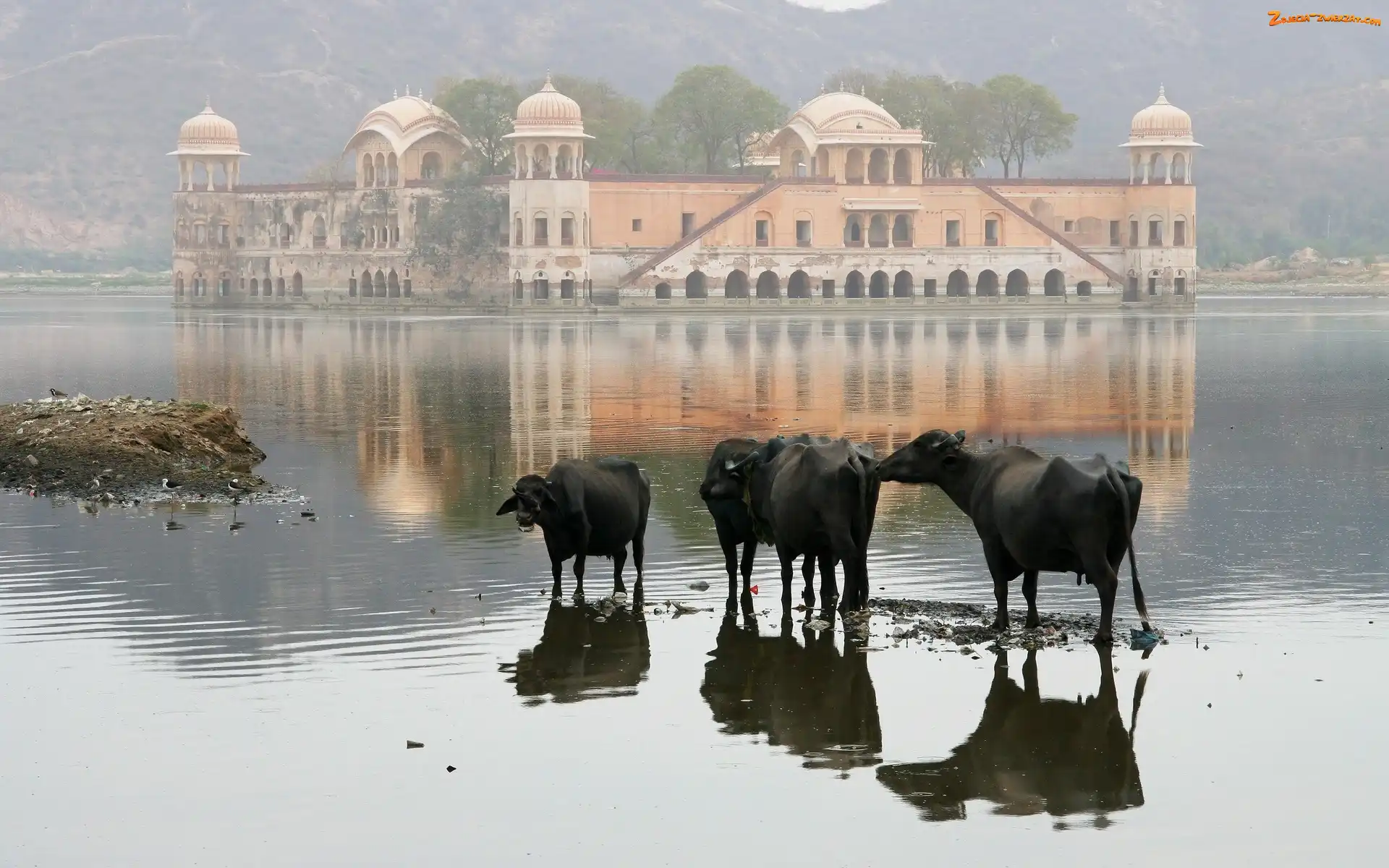 Zdjęcie: Ptaki, Indie, Krowy, Pałac