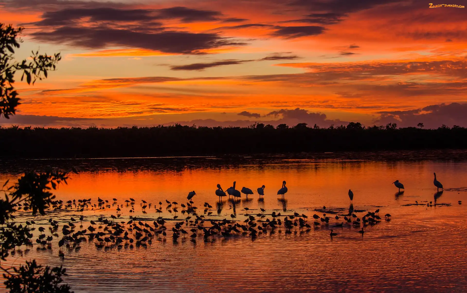 Zdjęcie: Ptaki, Chmury, Zachód Słońca