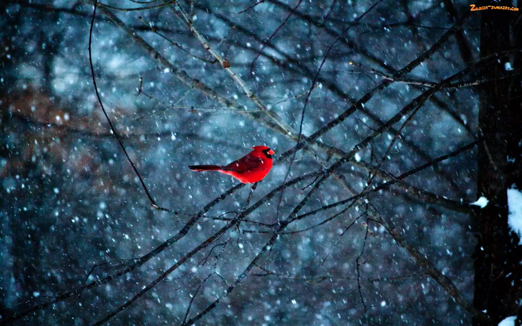 Zdjęcie: Ptaszek , Śnieg, Czerwony, Gałęzie