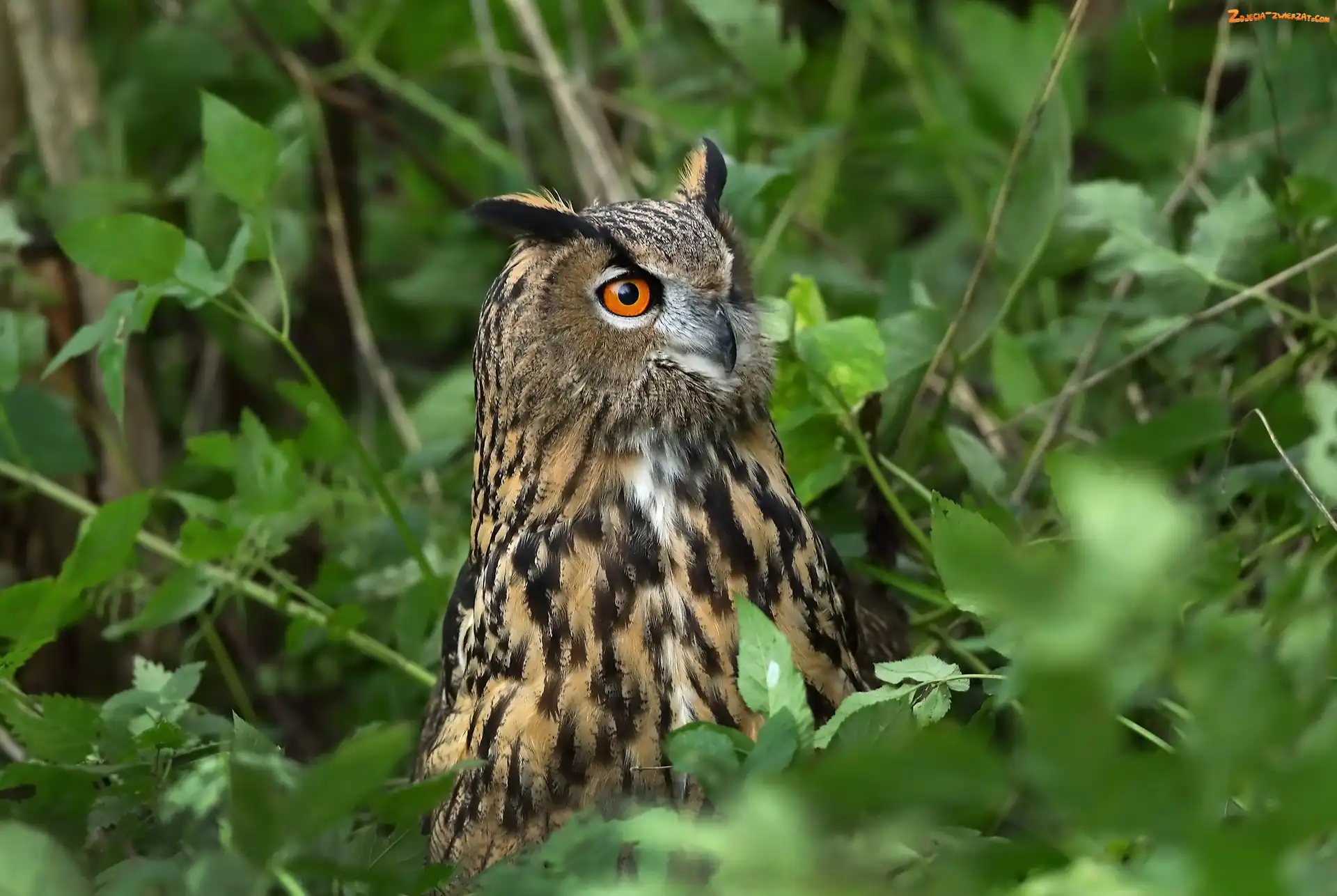 Zdjęcie: Puchacz, Liście, Sowa, Zielone