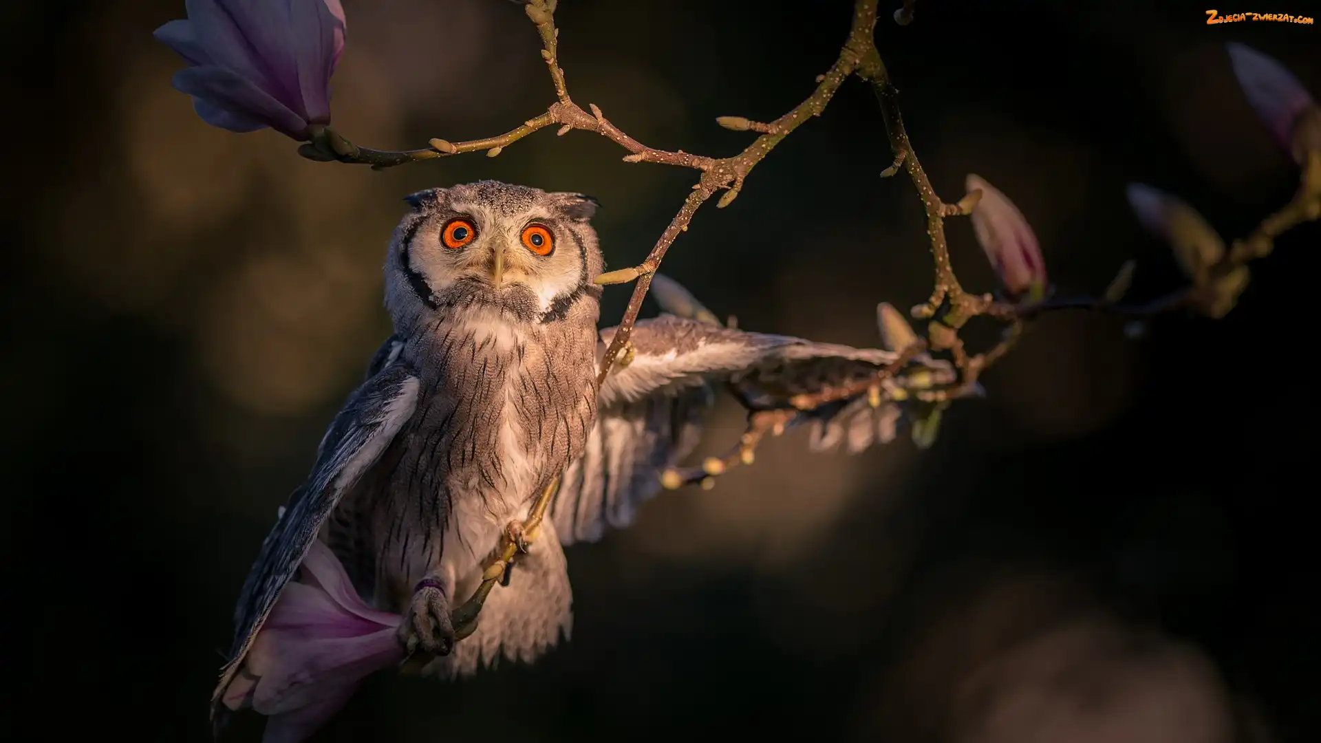 Puchacz, Magnolia, Sowa, Gałązki