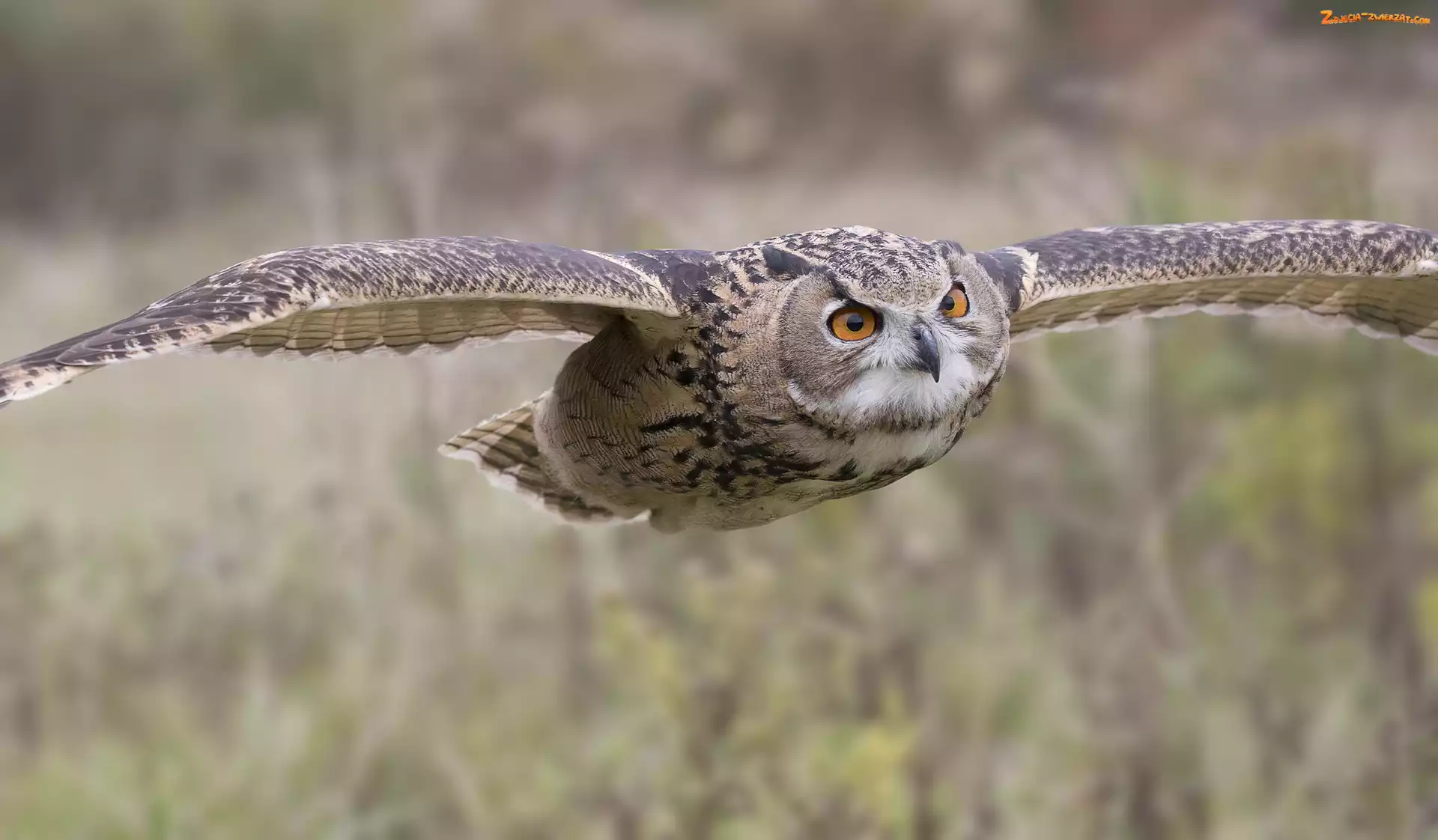 Zdjęcie: Puchacz, Rozmyte tło, Sowa, Lot