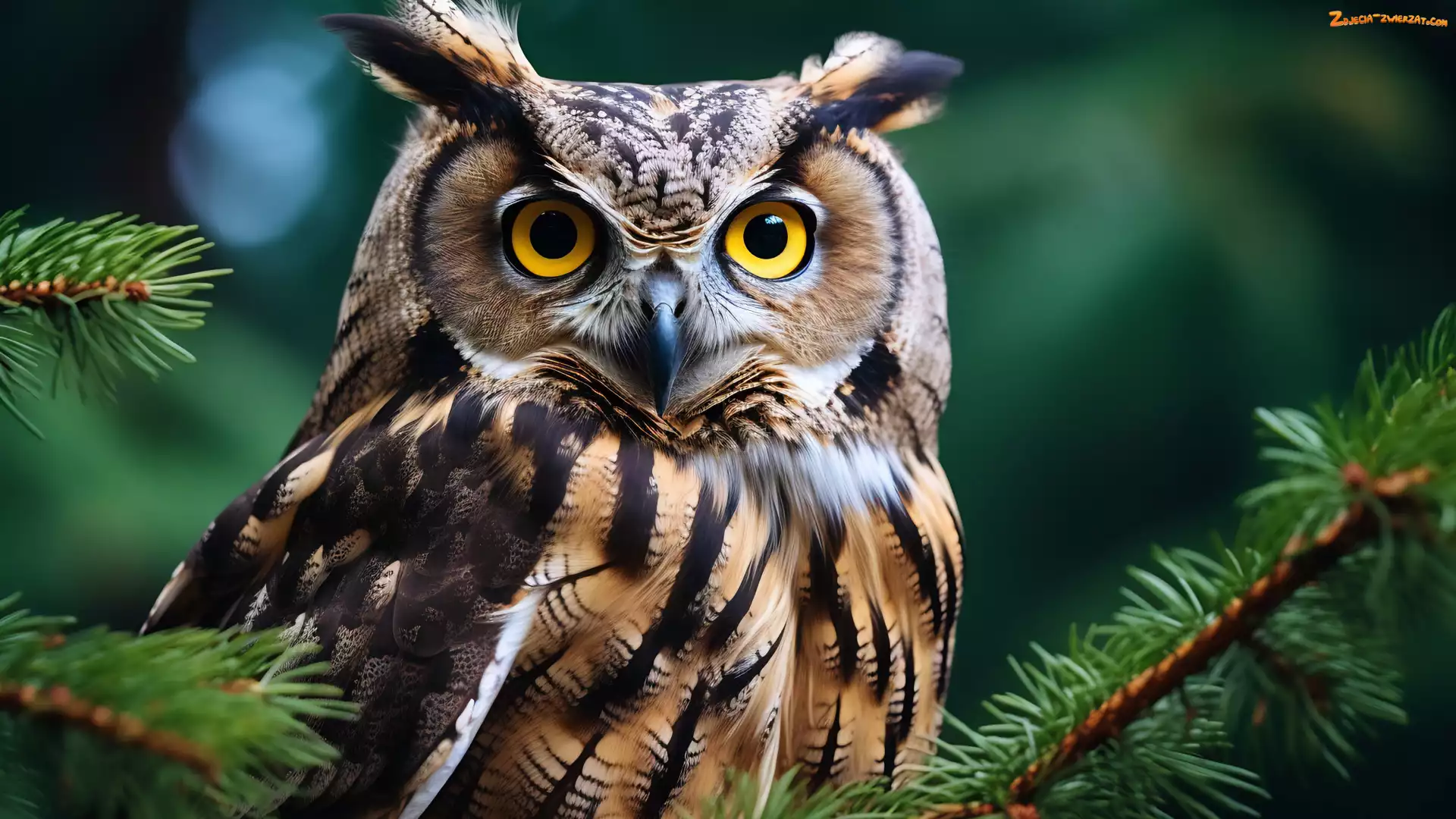 Zdjęcie: Gałązki, Żółte, Sowa, Puchacz, Oczy, Świerkowe