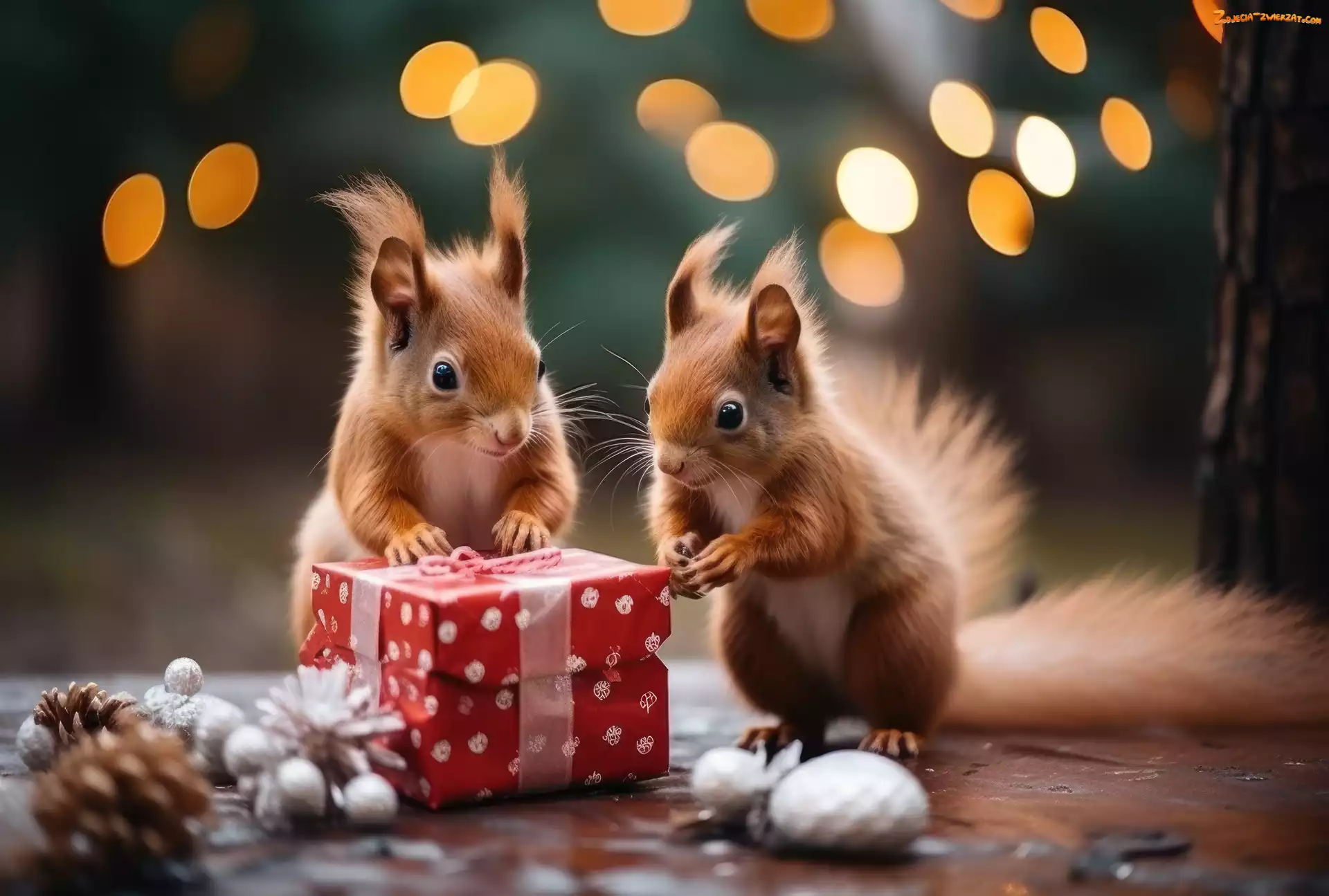 Zdjęcie: Dwie, Wiewiórki, Prezent, Pudełko