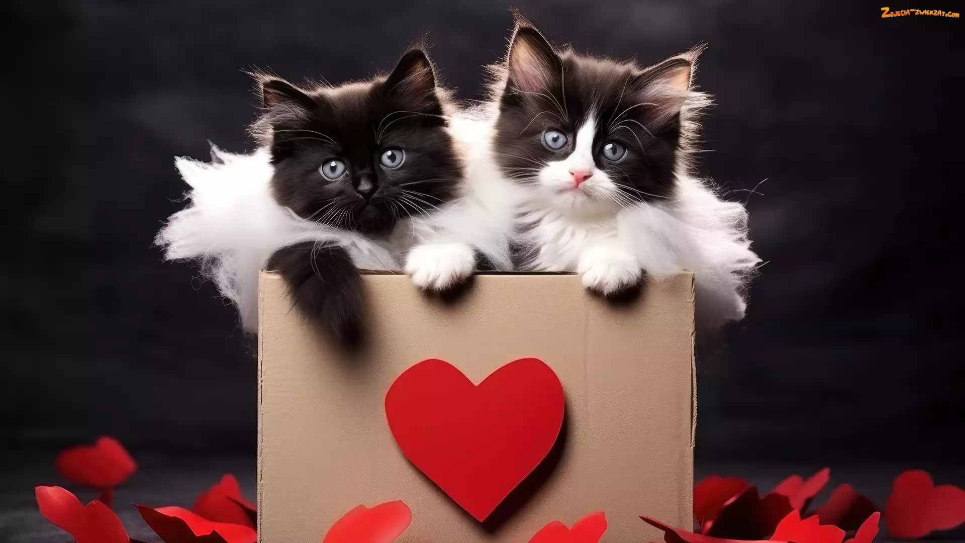 Zdjęcie: Ozdobne, Pudełko, Serca, Dwa, Koty