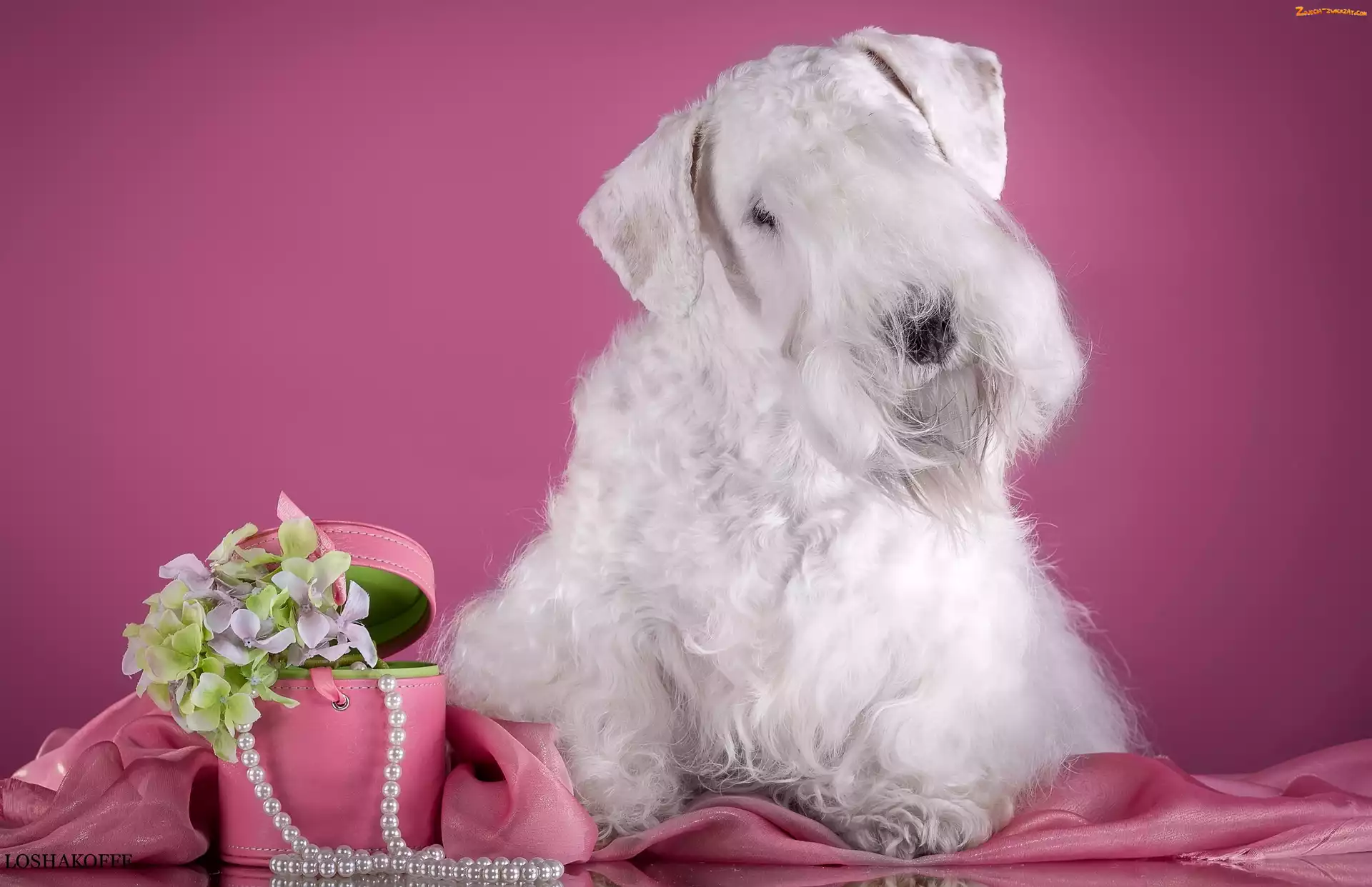 Zdjęcie: Pudełko, Perły, Sealyham Terrier, Kwiatki
