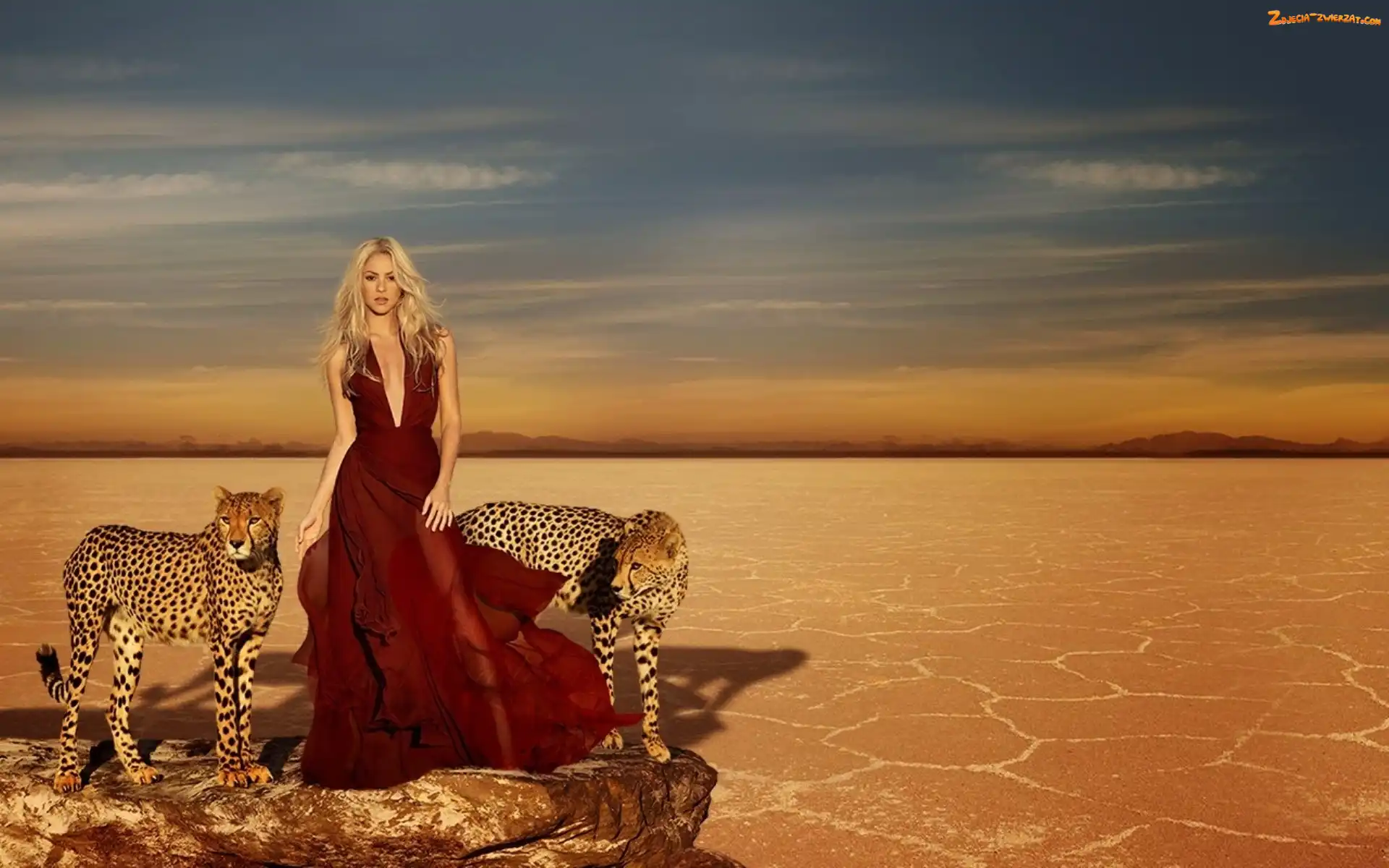 Zdjęcie: Pustynia, Gepardy, Shakira, Kobieta, Dwa