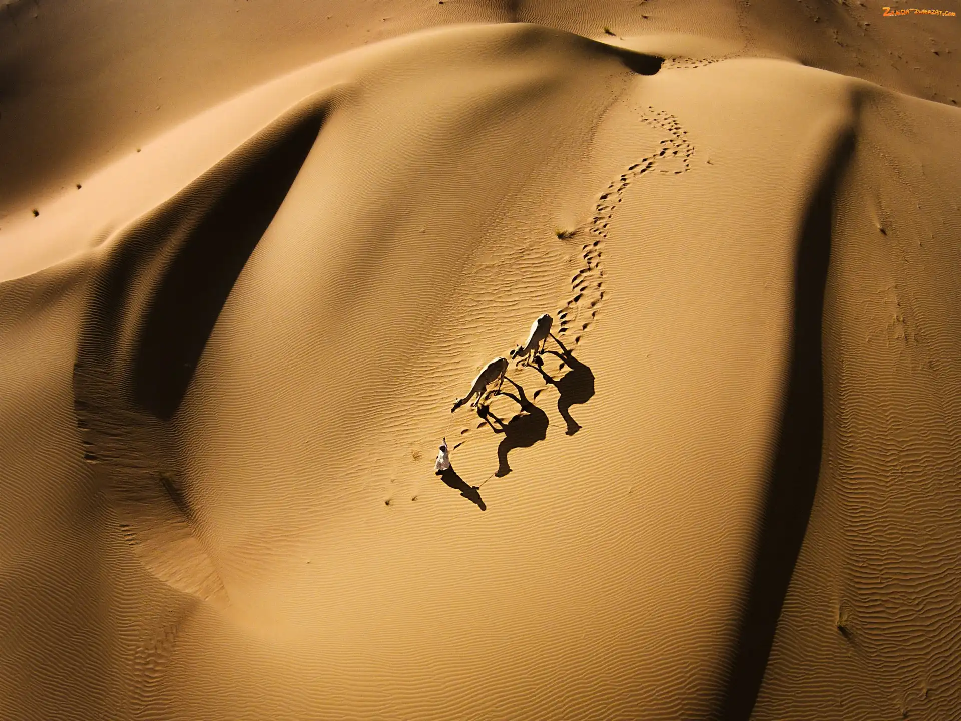 Zdjęcie: Wielbłądy, Pustynia, Człowiek
