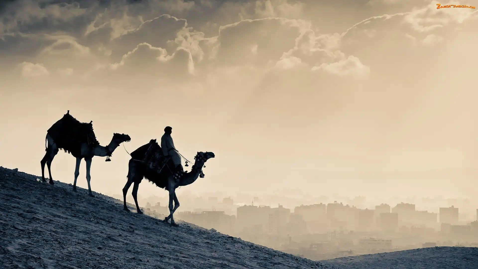 Pustynia, Człowiek, Piasek, Wielbłądy, Miasto