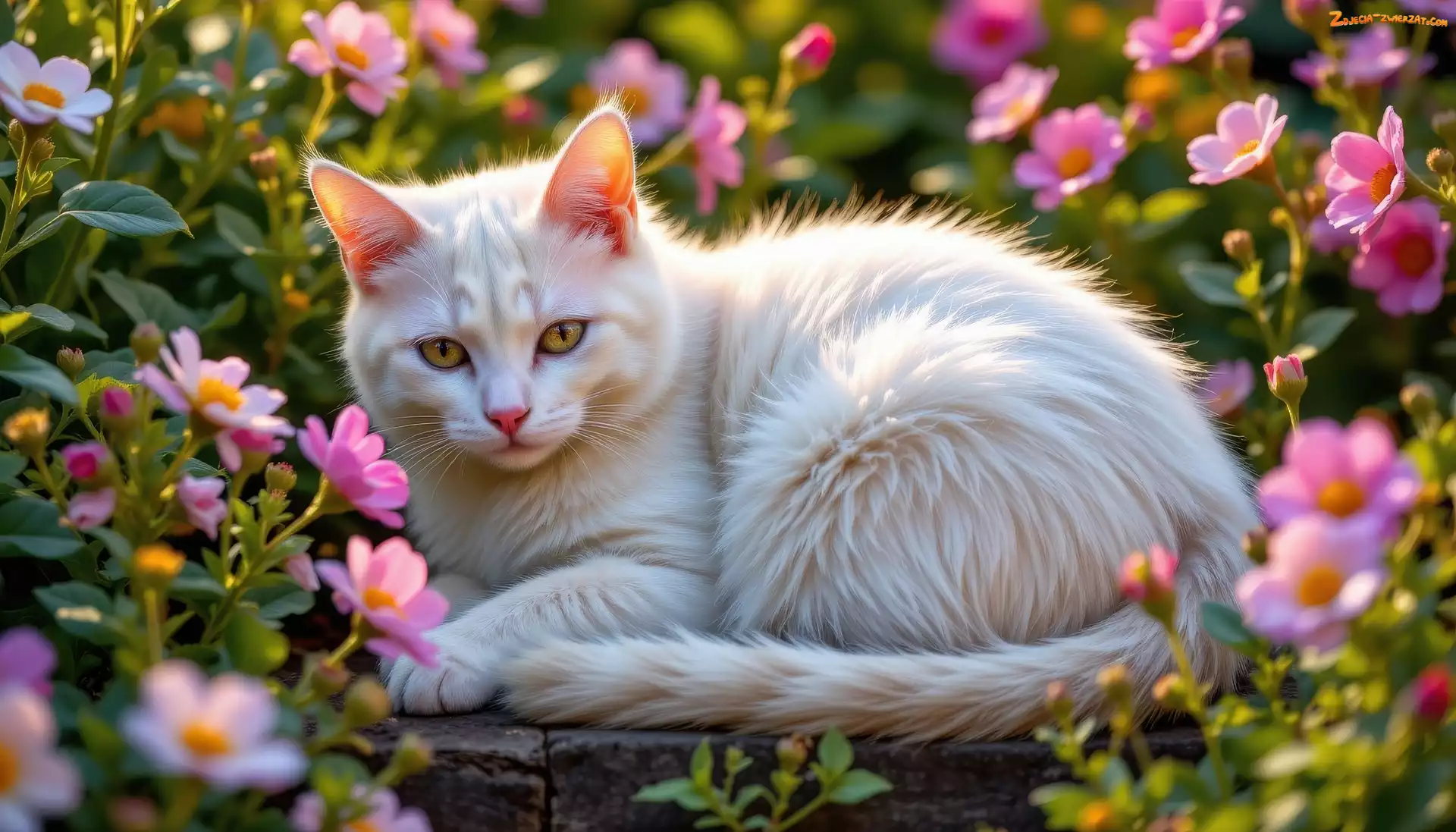 Zdjęcie: Kwiaty, Puszysty, AI, Kot, Biały
