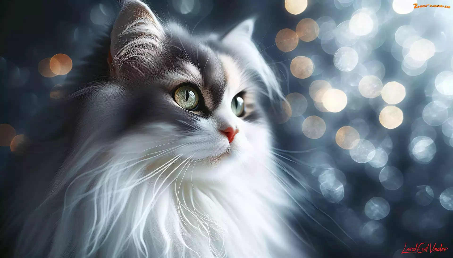 Zdjęcie: Kot, Biały, Grafika, Puszysty