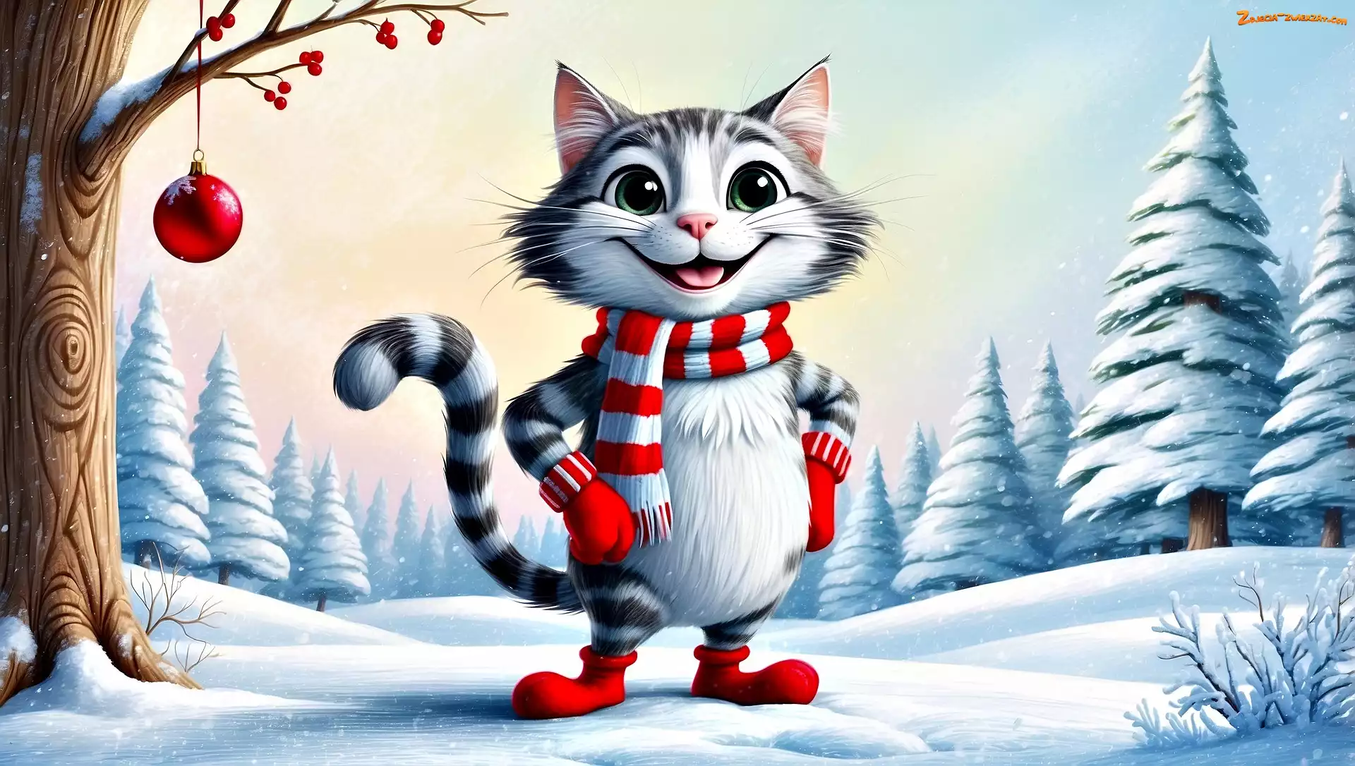 Zdjęcie: Zima, Rękawiczki, AI, Kot, Szalik