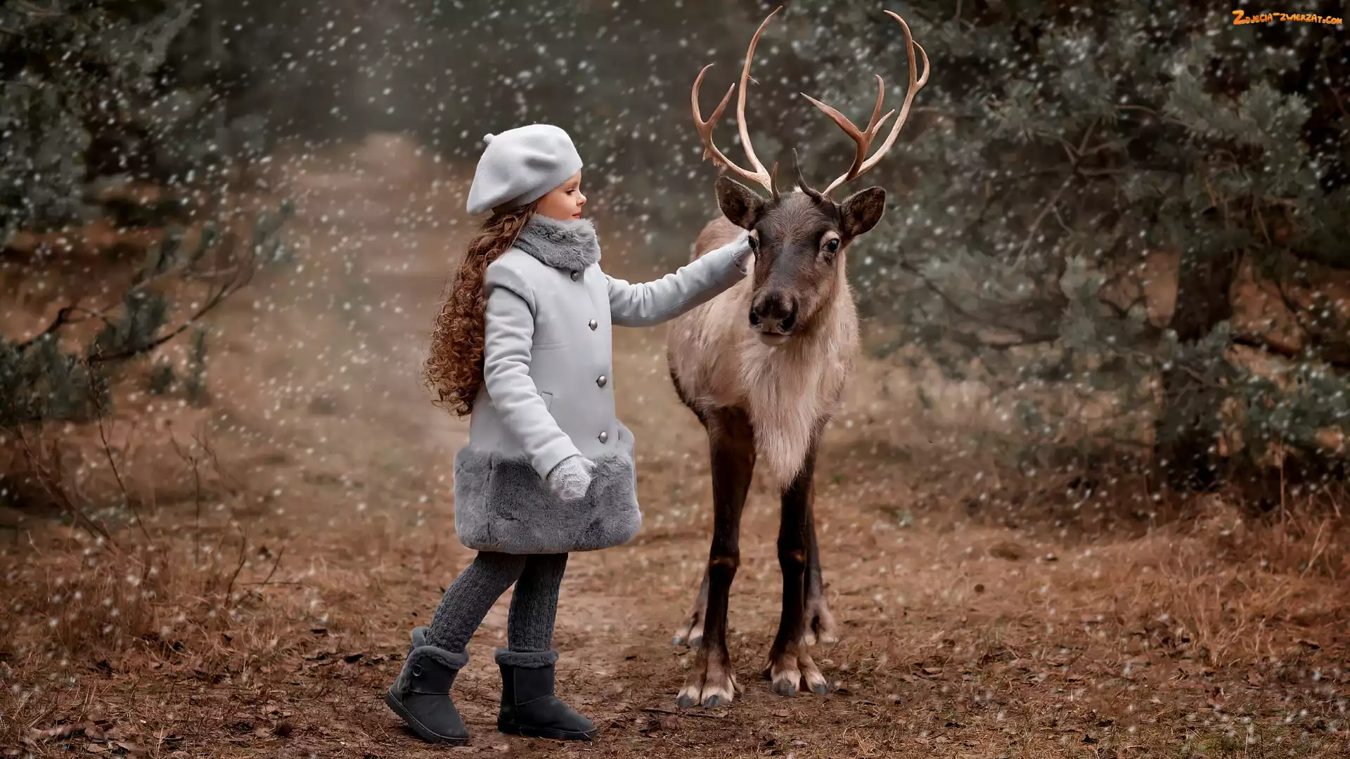 Zdjęcie: Renifer, Beret, Szary, Dziewczynka, Płaszczyk